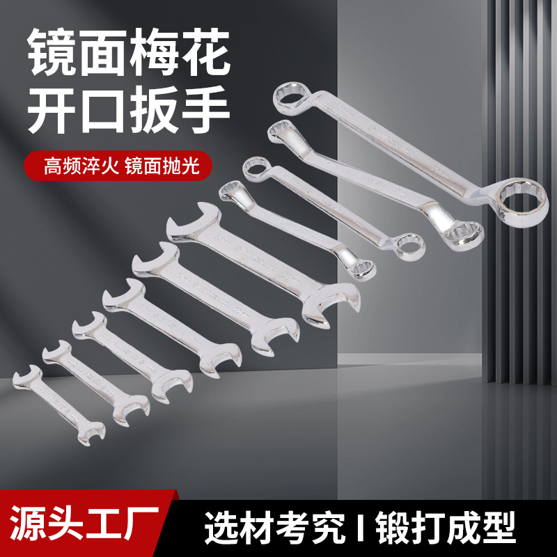 鏡面梅花型開口レンチメーカー卸売手鍛造亜鉛メッキ金物工具セット防錆処理済み