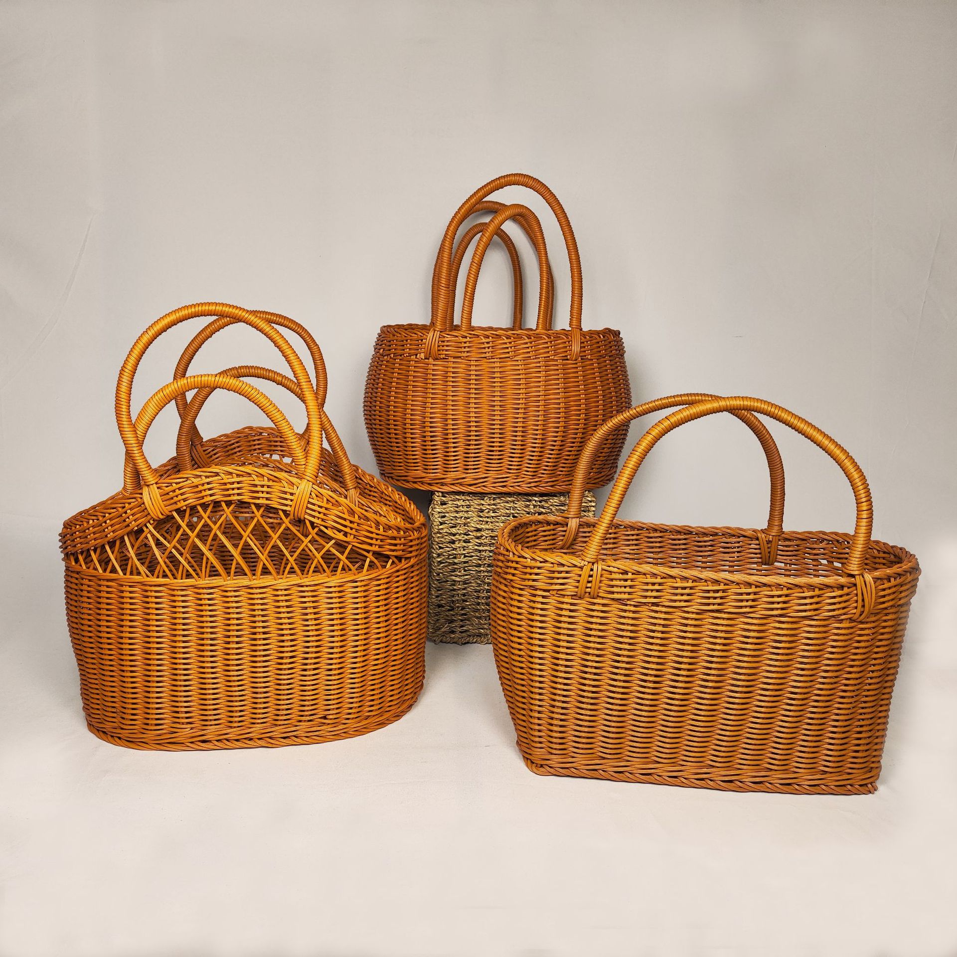 籐編みのプラスチック製の手提げかごの長方形は野菜を買います。