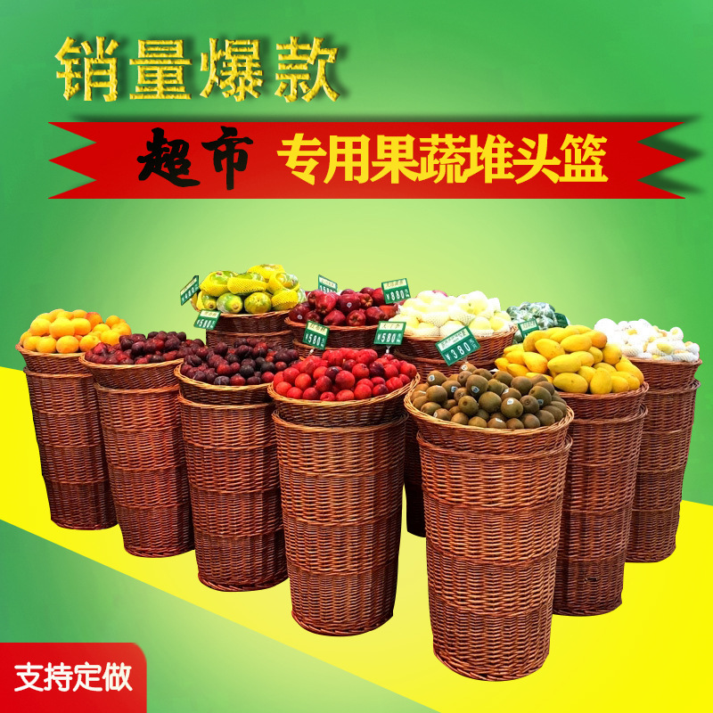 藤編み積み上げかご柳編み収納かご果物かごスーパー果物陳列かご編み展示積み上げかご竹藤枠