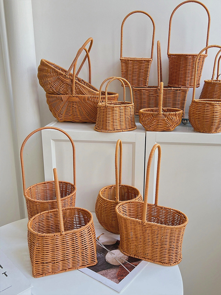 花かごの手提げかごの藤編み生け花月子卵果物diy草竹編みオープン生花バスケット