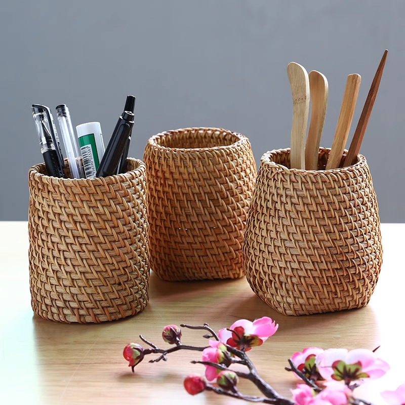 ベトナム藤編み収納かごドライフルーツ収納皿藤編みオフィス筆筒レストランスプーンフォーク収納かご