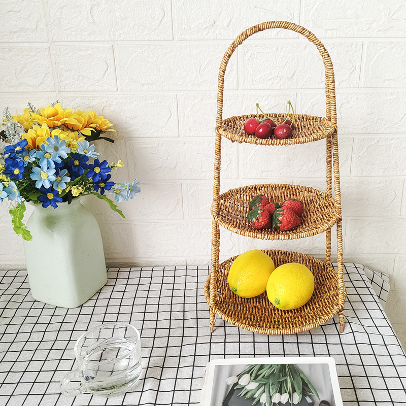 籐模様の多層フルーツプレート、ヨーロピアンスタイルの軽奢なドライフルーツプレート、リビングルーム用家庭用スナックパン収納バスケット