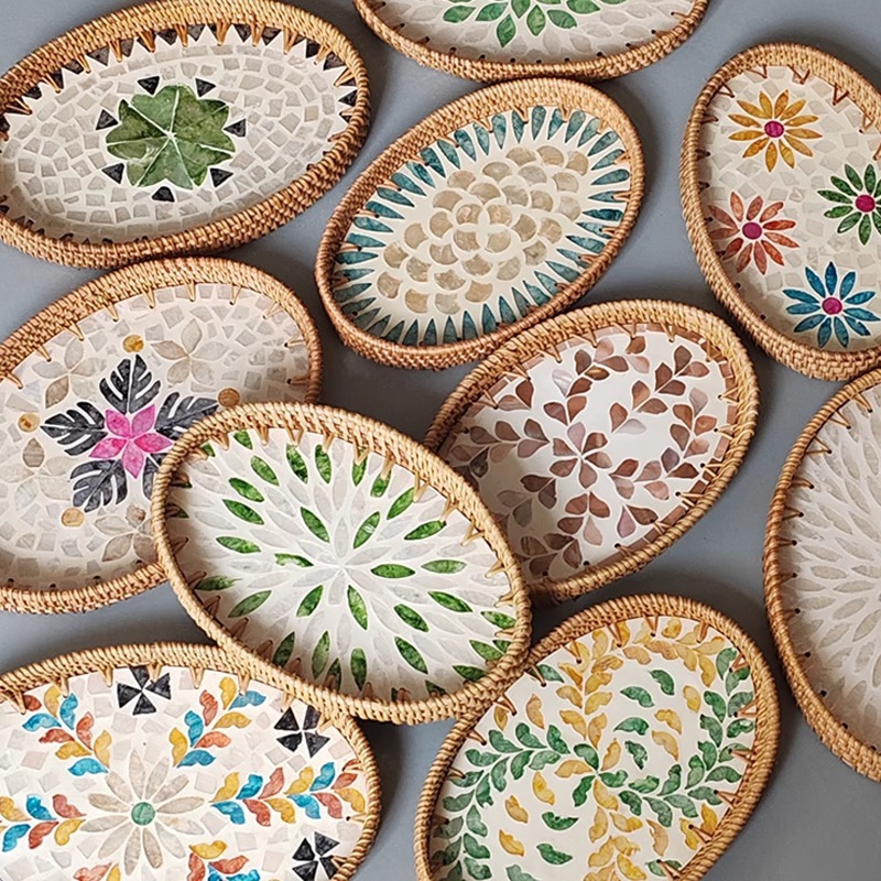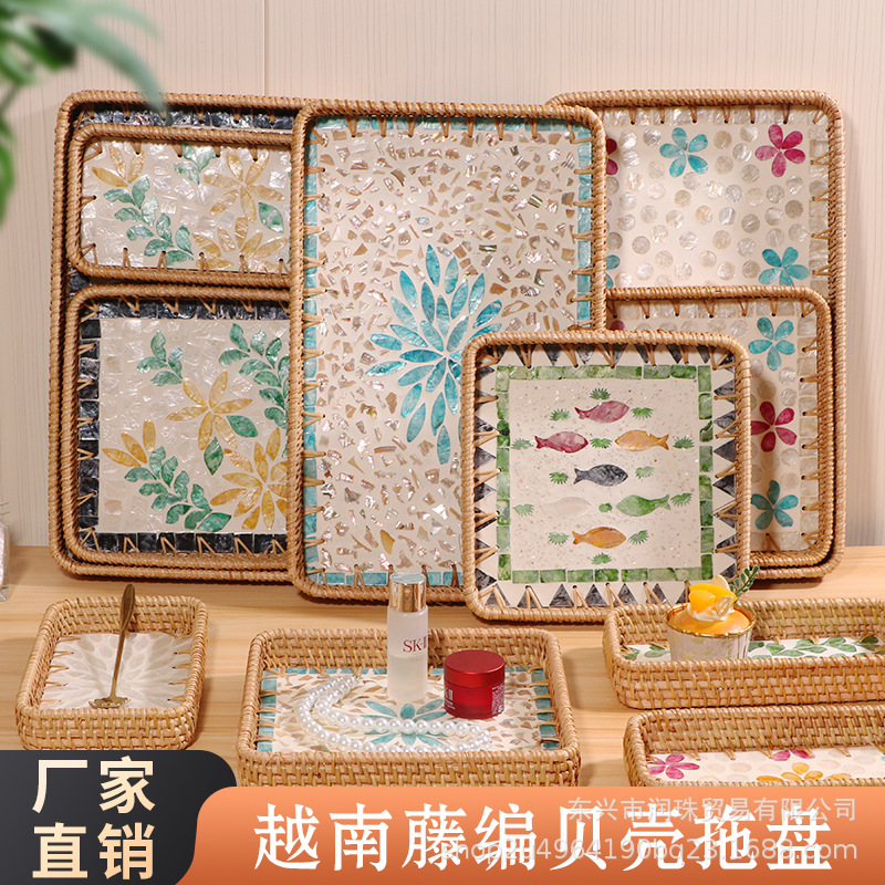 ベトナム籐シェルトレイリビングルームホーム手織りフルーツパントレイクリエイティブ装飾品装飾トレイ