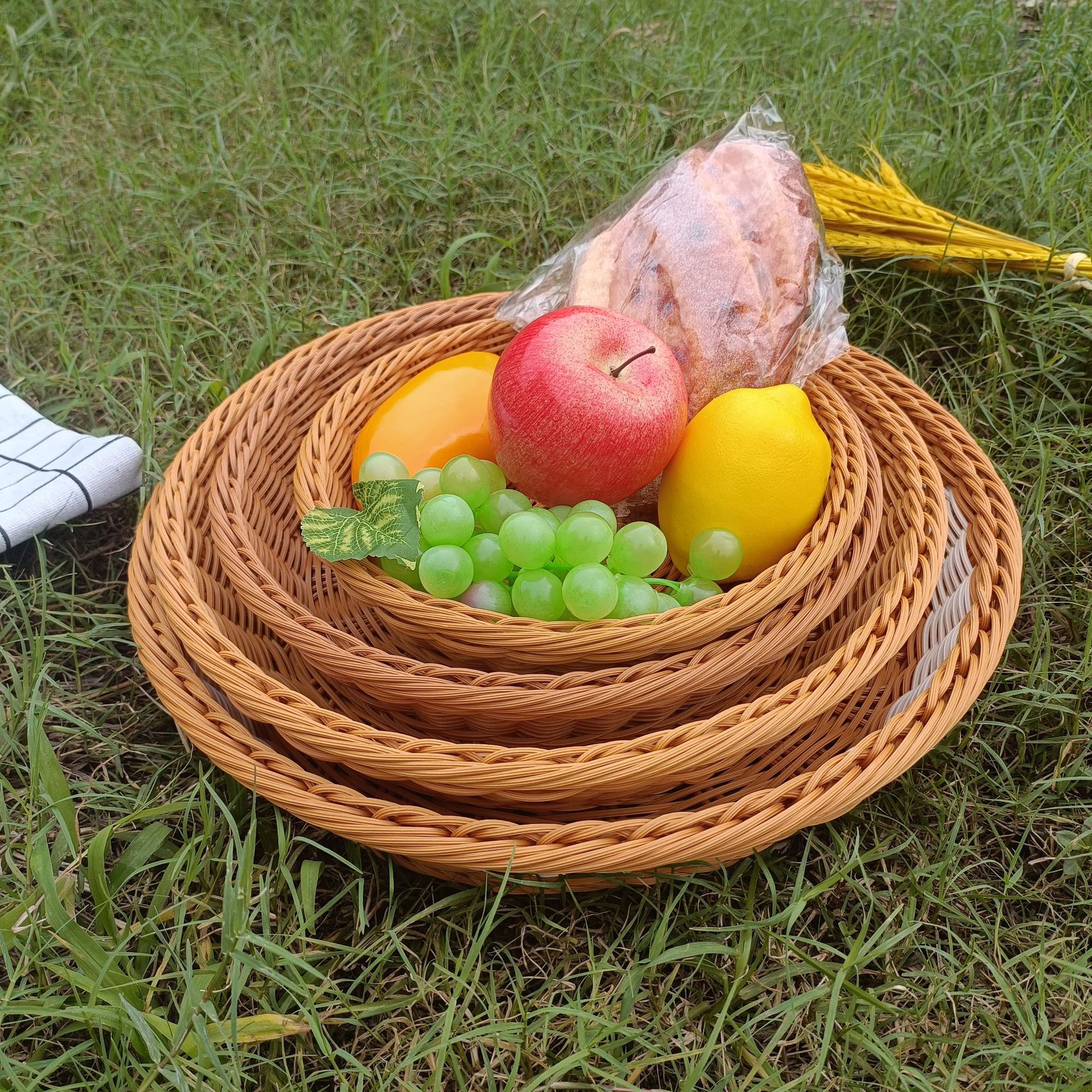 スーパーマーケットのフルーツプレート、パンバスケット、ディスプレイバスケット、模造籐フルーツプレート、フルーツバスケット、長方形スナックプレート、フルーツボウル収納バスケット