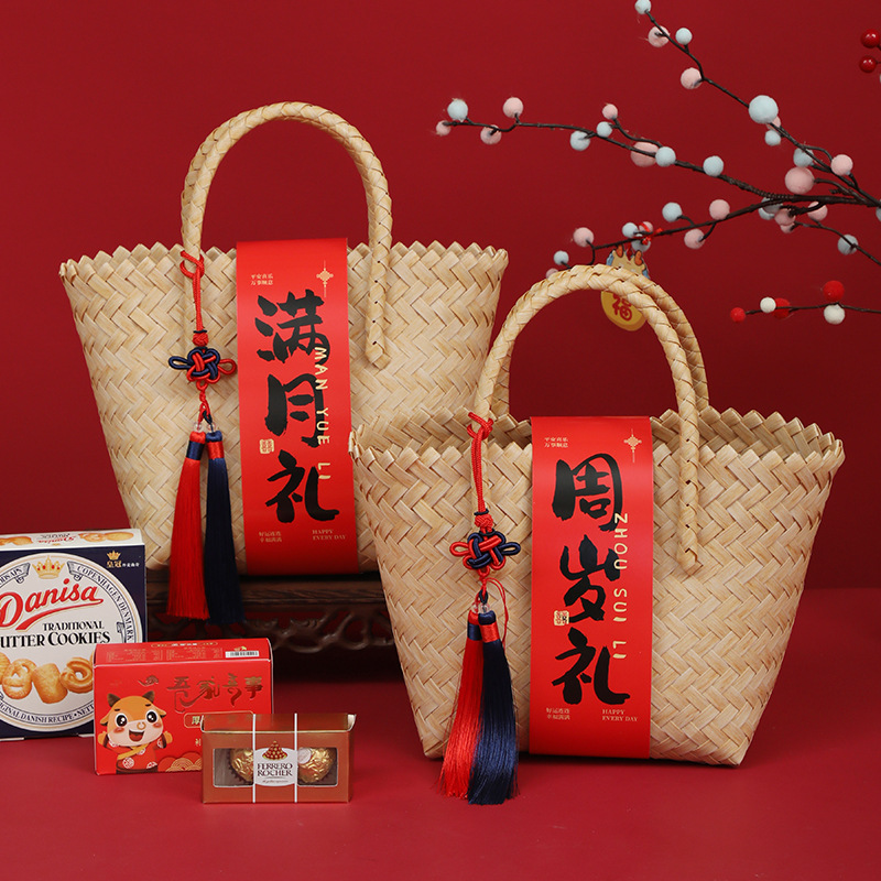 編みかご、手提げかご、贈り物、結婚式、満月、誕生日、新築祝い、会社の年次総会、かご、編み籐工芸、籐製品