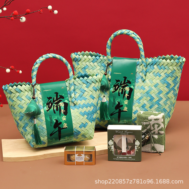 中国式端午のお土産のバスケット手作りの編み包みの伝統的な祝日の引っ越しの誕生日の福寿の結婚式