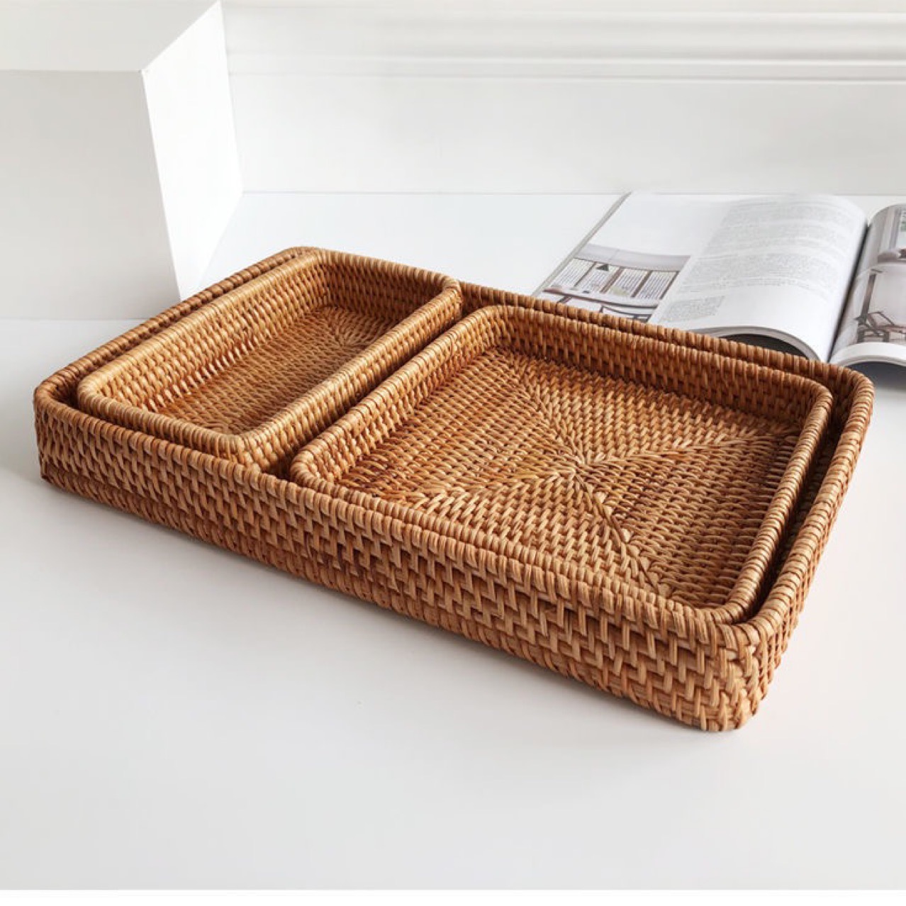ベトナム秋籐織物収納バスケット茶漏れバスケットフルーツトレイ中空家庭用トレイスナックドライフルーツバスケットトレイ