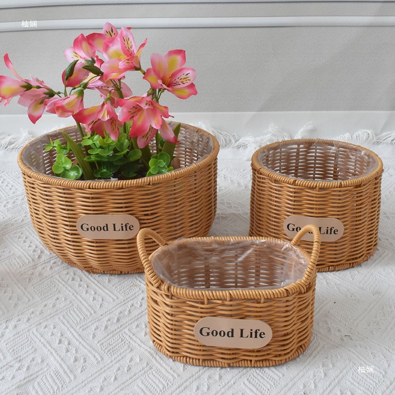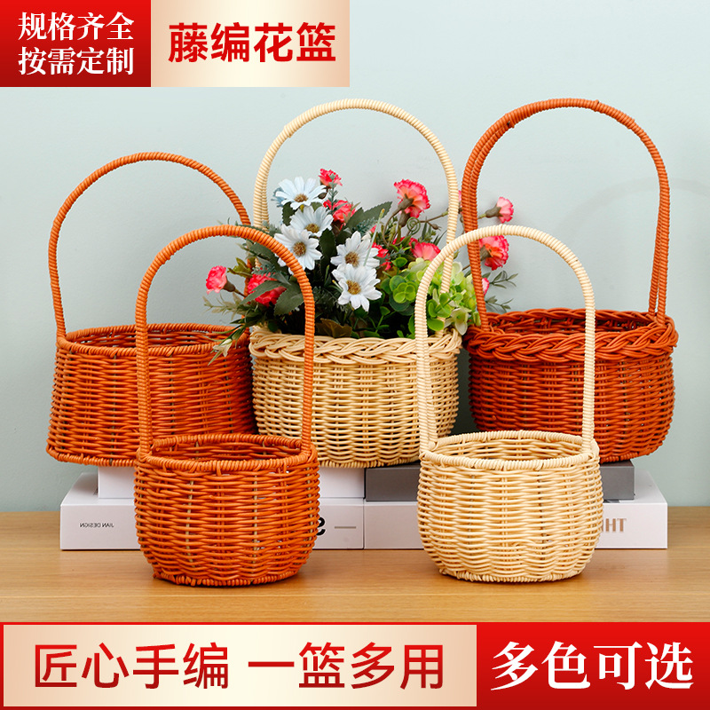 籐編み植木鉢収納花籠生け花手提げバスケット花花芸緑植盆栽肉緑羅盆