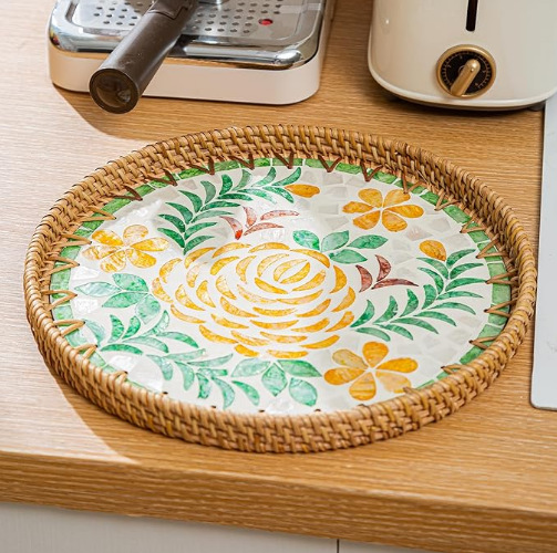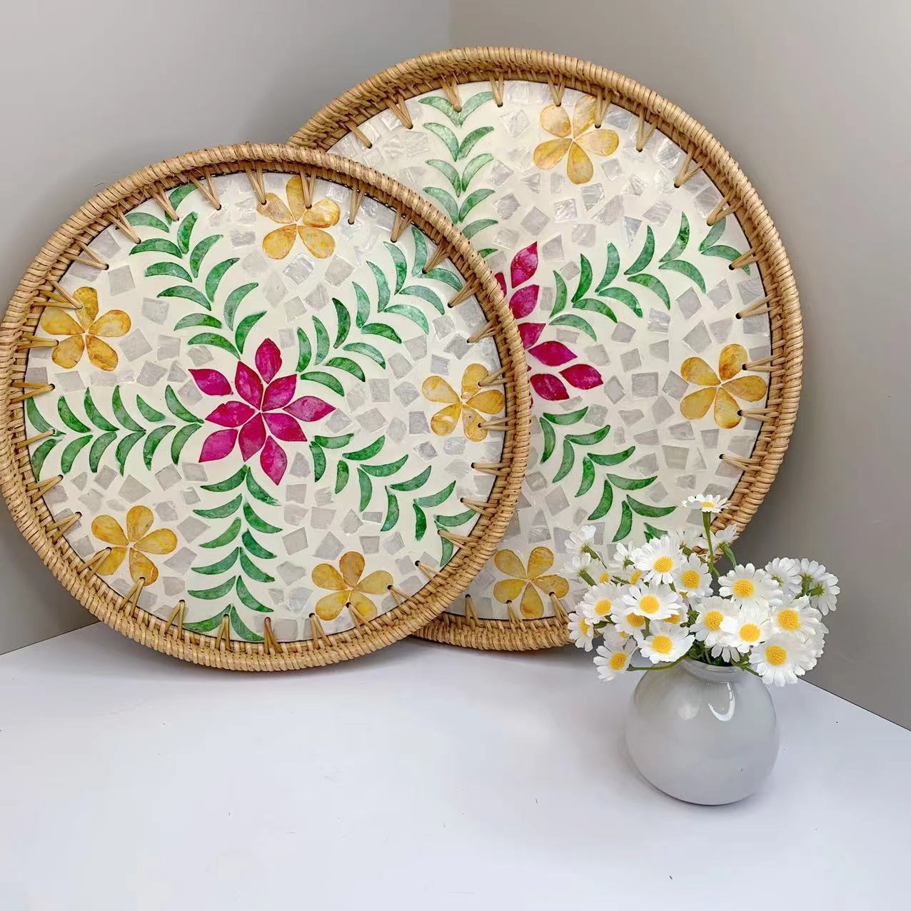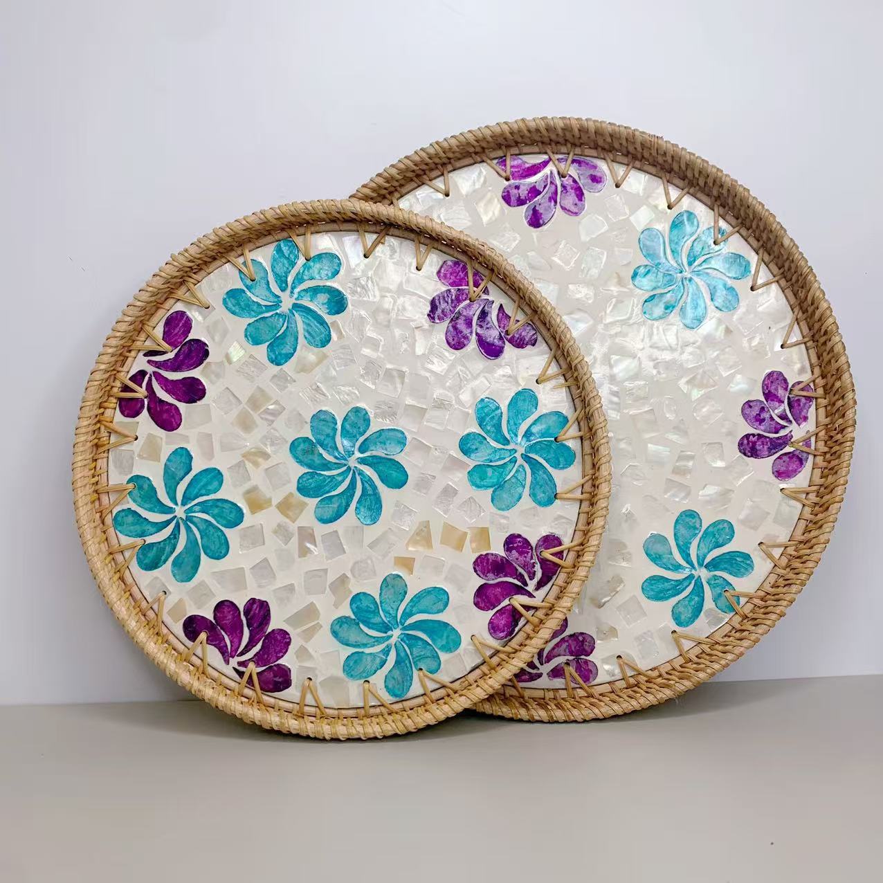 ベトナム籐编みシェルトレイ彩贝収纳家庭用リビングルームスナック皿スナック収纳トレイ