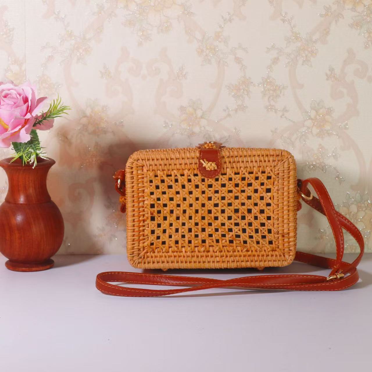 秋藤編みバッグ森系バスケット子レトロ文芸手作り籐編み長方形透かし彫りショルダーバッグ