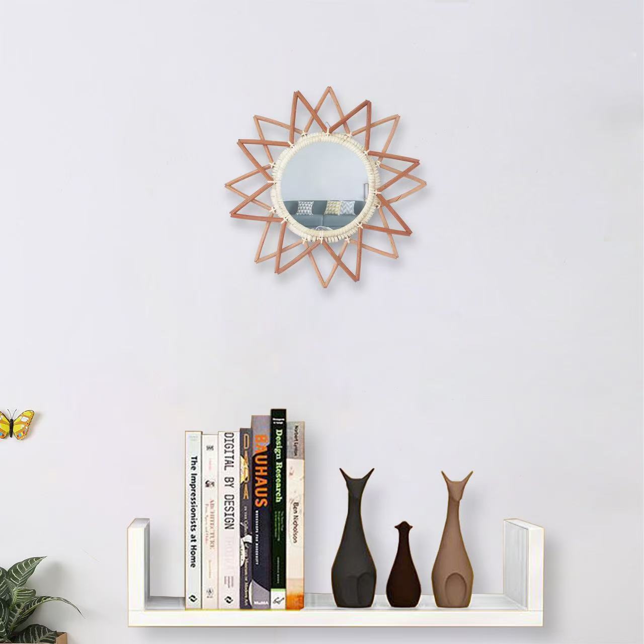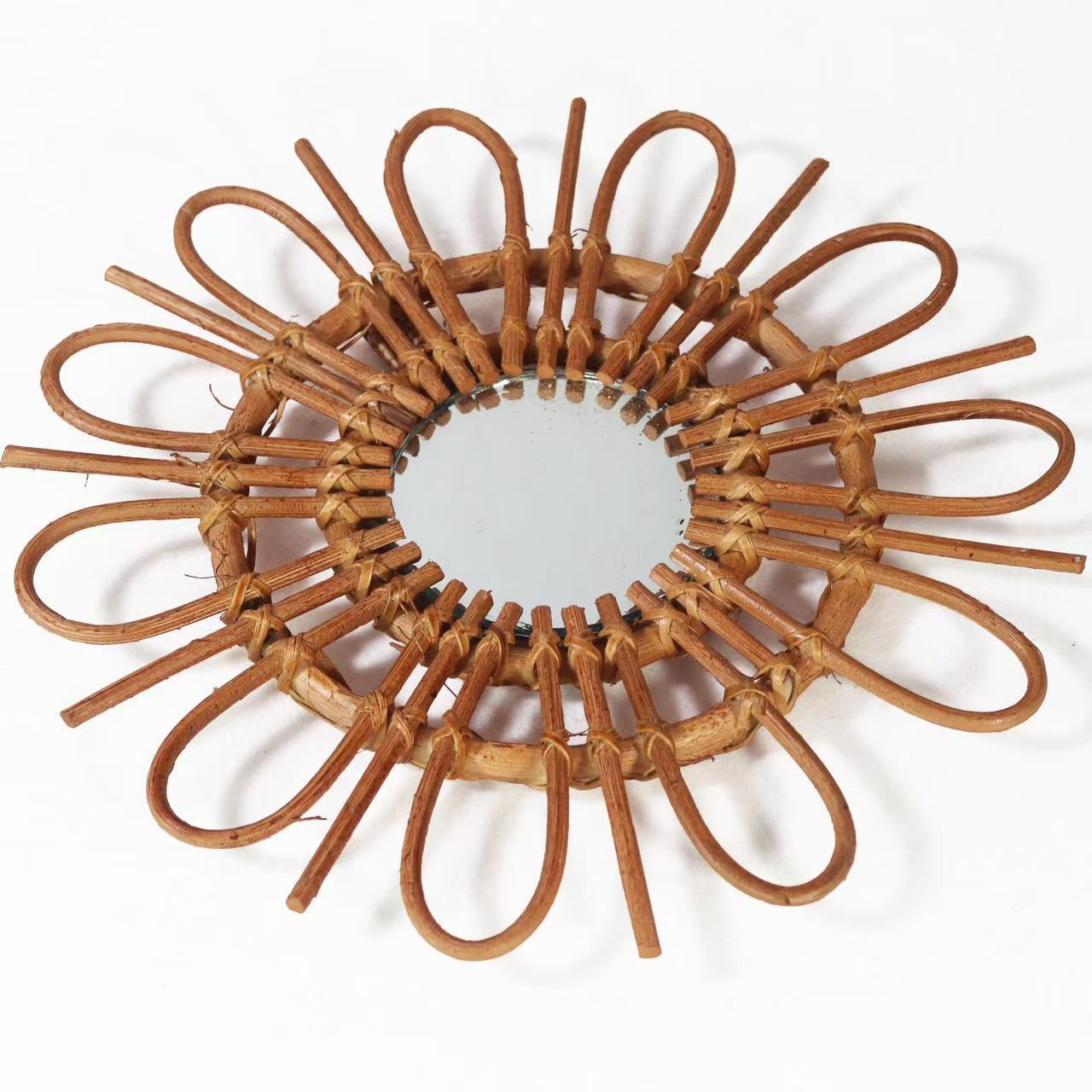 藤編文芸レトロ家庭用竹編化粧鏡装飾鏡スタジオ民宿掛け鏡太陽花鏡