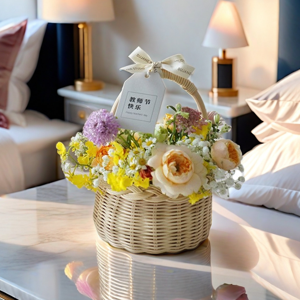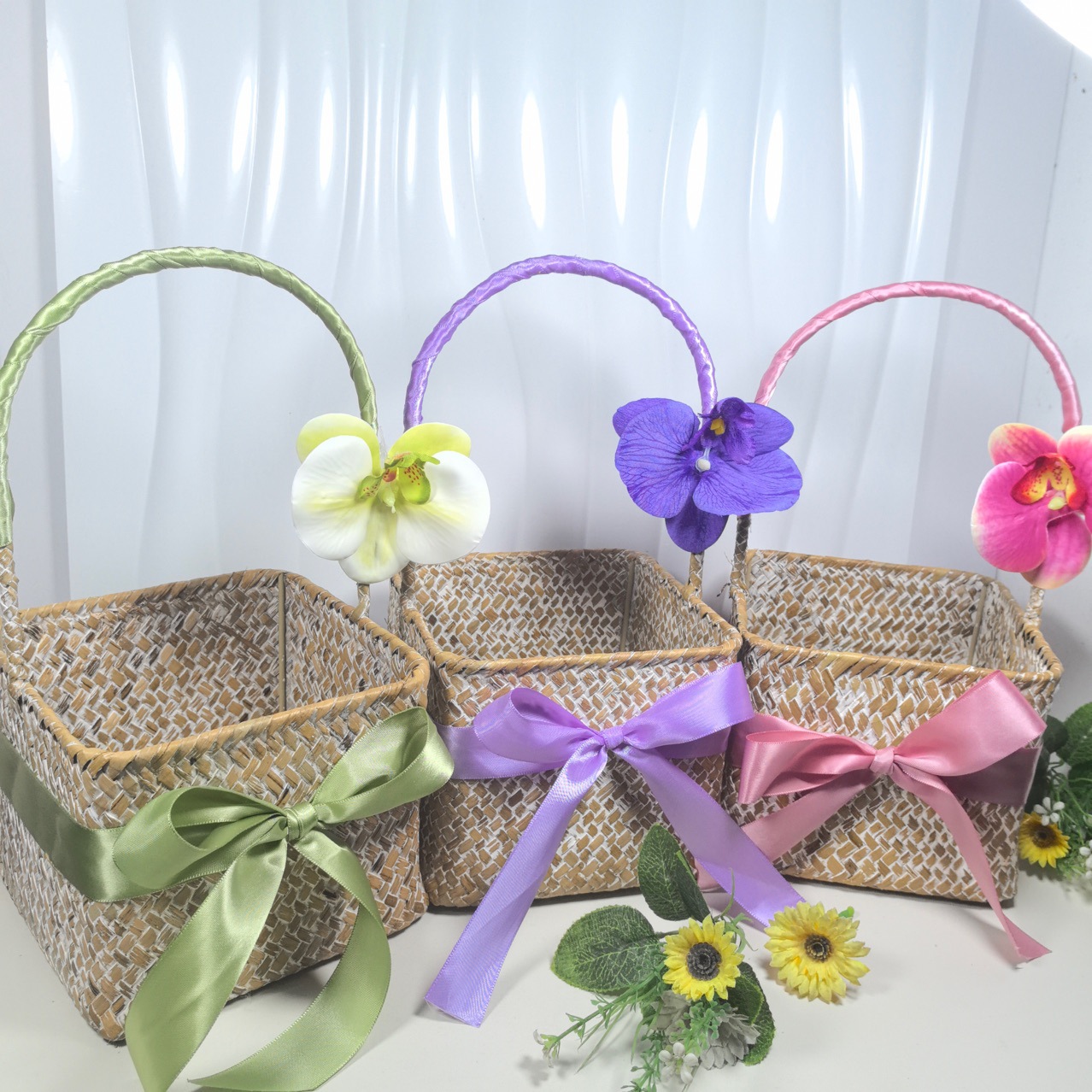 籐編み花籠花束手提げかご結婚花童花かご園芸生け花置物ダンス道具手提げ花かご