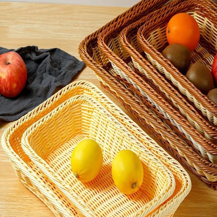 新中国式pp/pe模造藤パンかご環境保護模造藤編み果物野菜かごデスクトップ藤編み収納かご