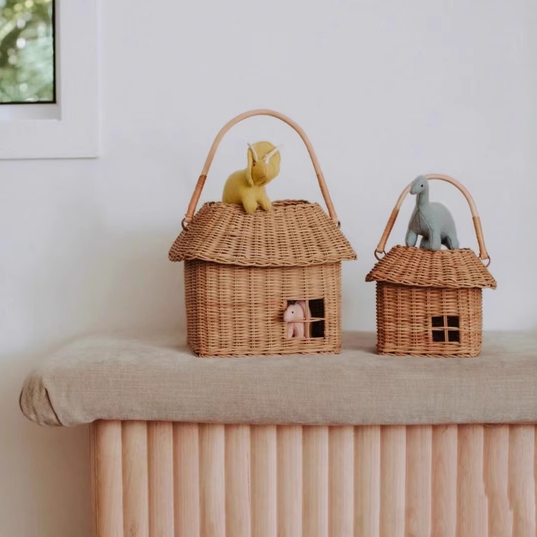 源メーカー卸売り新型手編み玩具雑物かご骨形藤編収納かご