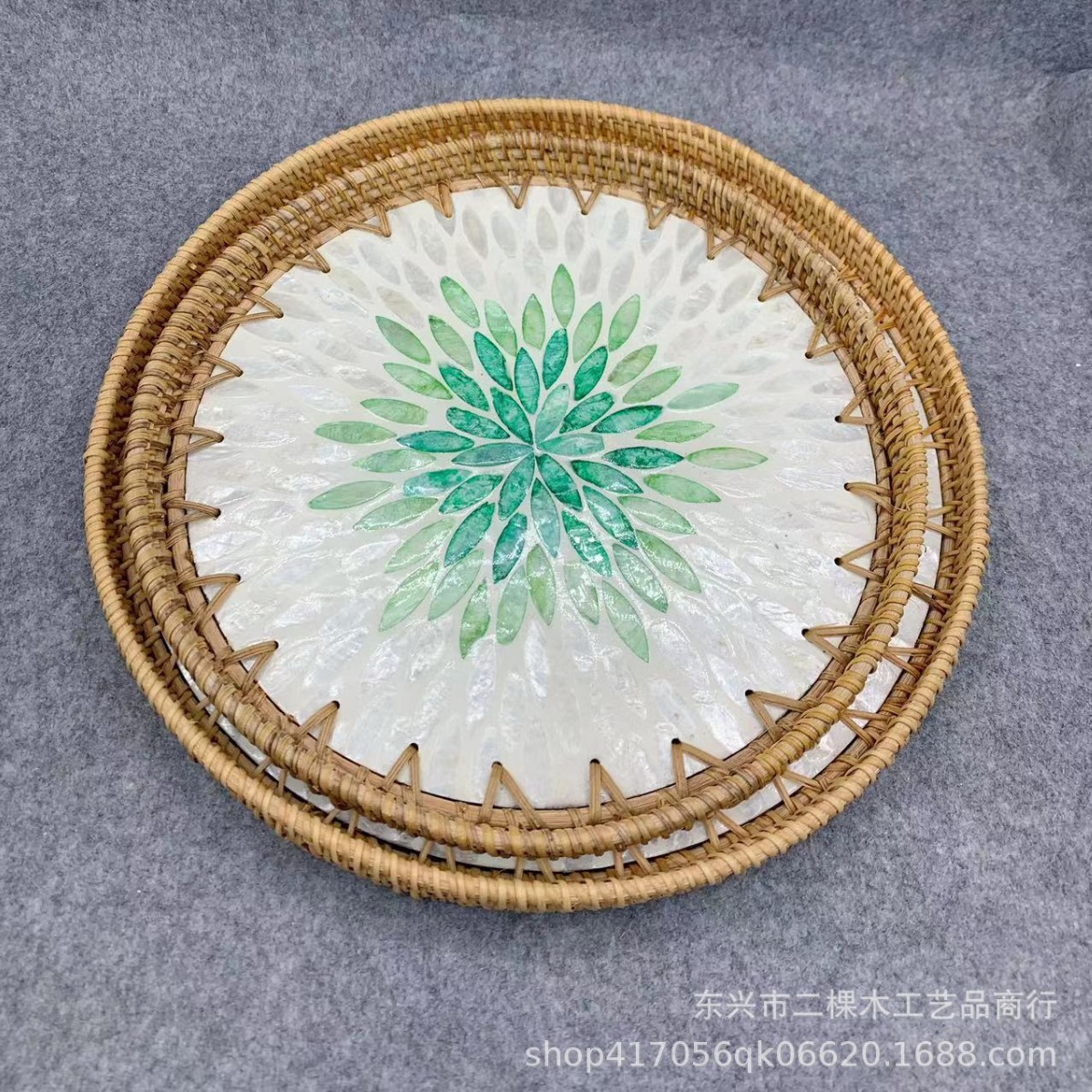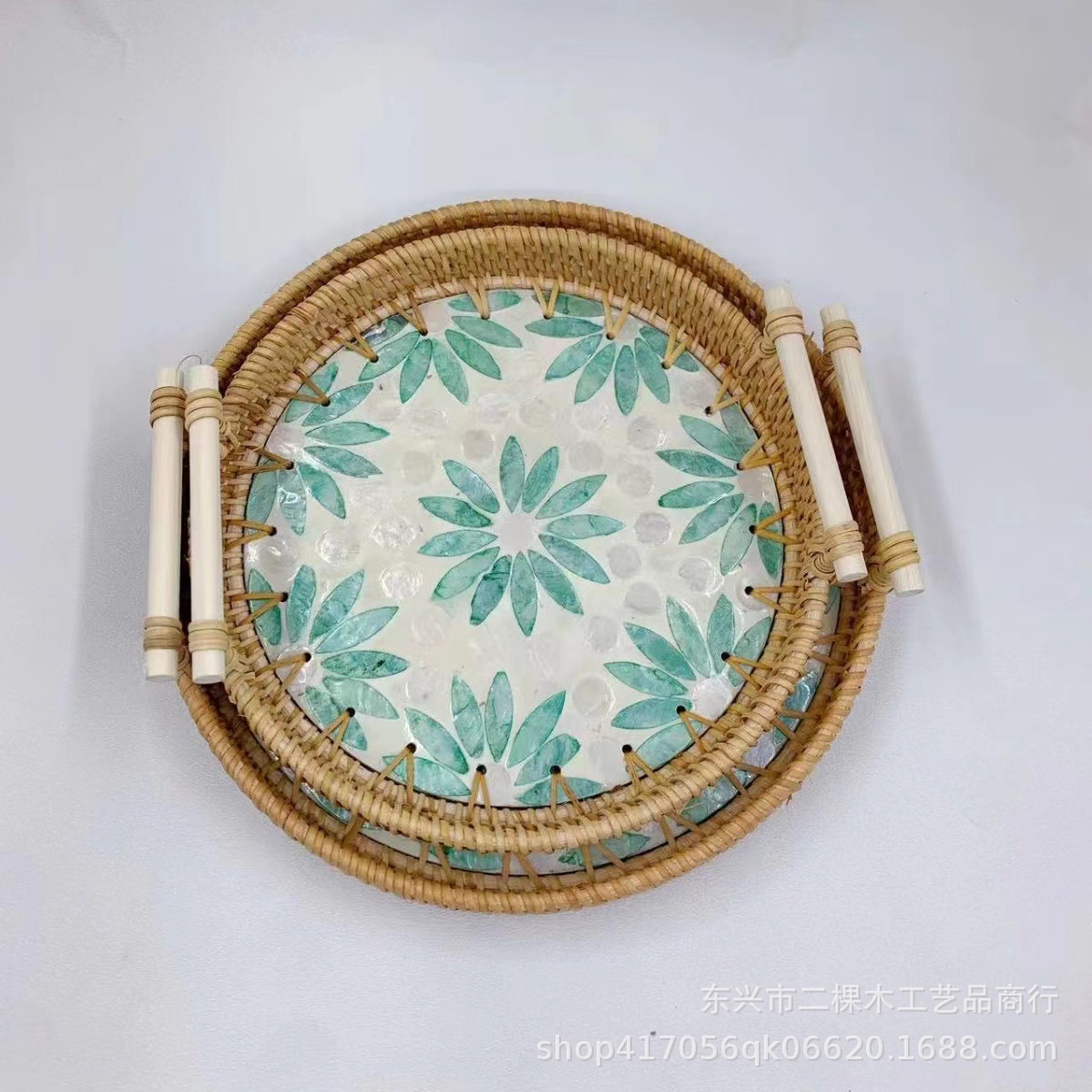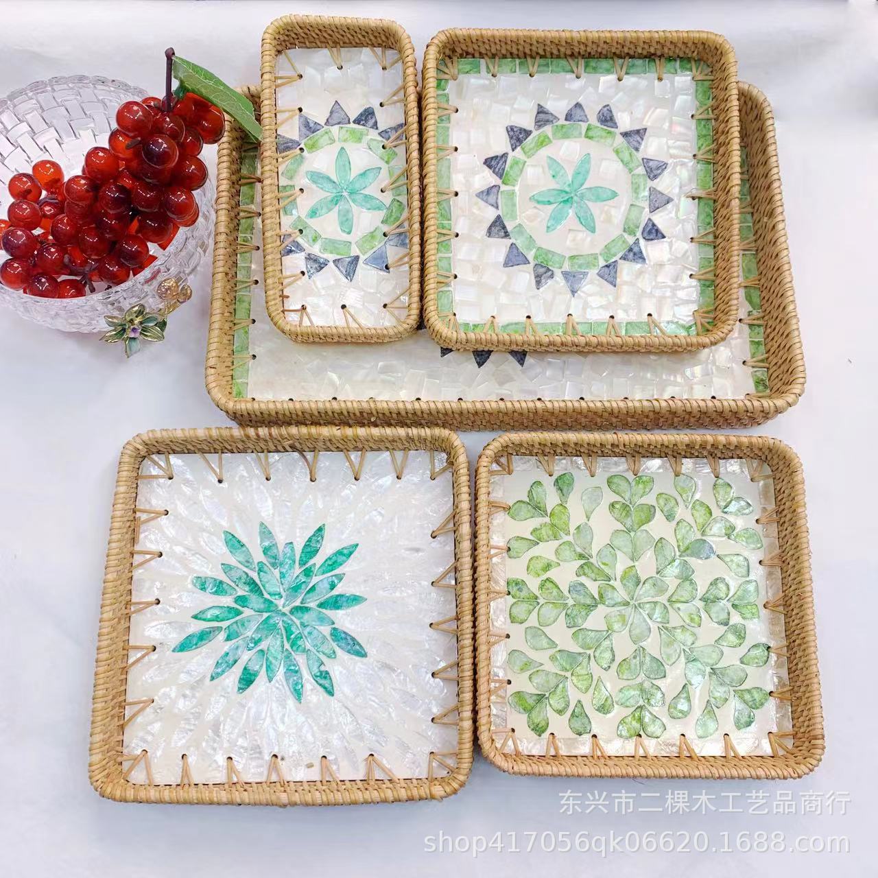 藤編み貝殻緑心白地藤編みトレー果物スナック家庭用トレー