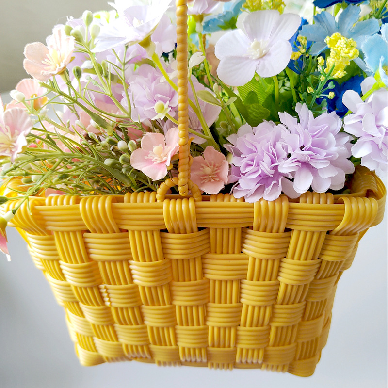 花籠手提げビニール模造籐編み生け花防水手編み手提げ祭りお土産バスケット生け花籠