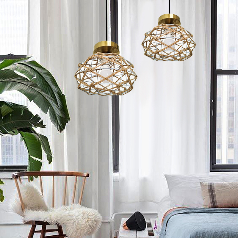 藤編みシャンデリア民宿真藤編み飾り手編み書斎寝室ランプシェード