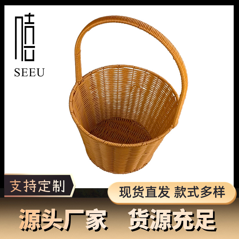 創意円童提籠防藤編ショッピングバスケット野菜バスケット果物かご摘採バスケット屋外バスケット