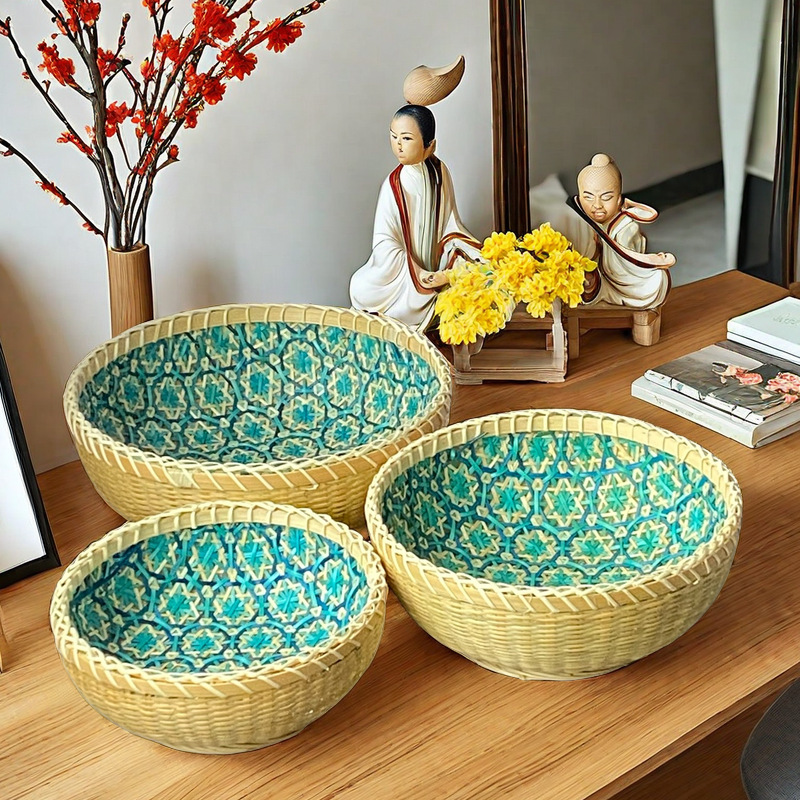 秋藤編みの円形の多彩な貝殻は家庭用の間食の果物のトレーの3つのセットを象眼します。