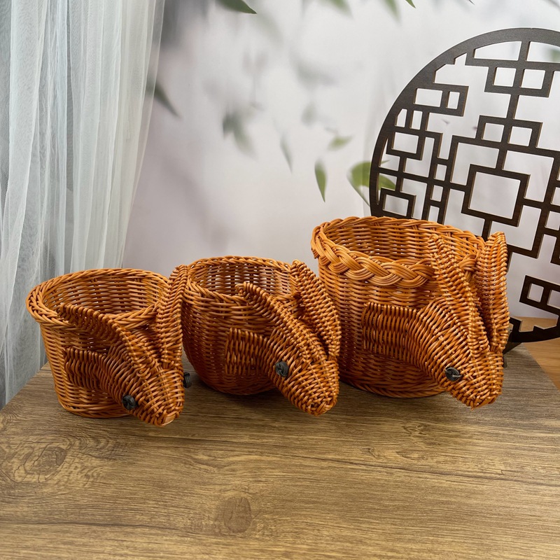 手作り編み籐バスケットホテル竹編みバスケット籐編みウサギバスケット籐編み動物バスケットクリエイティブ収納