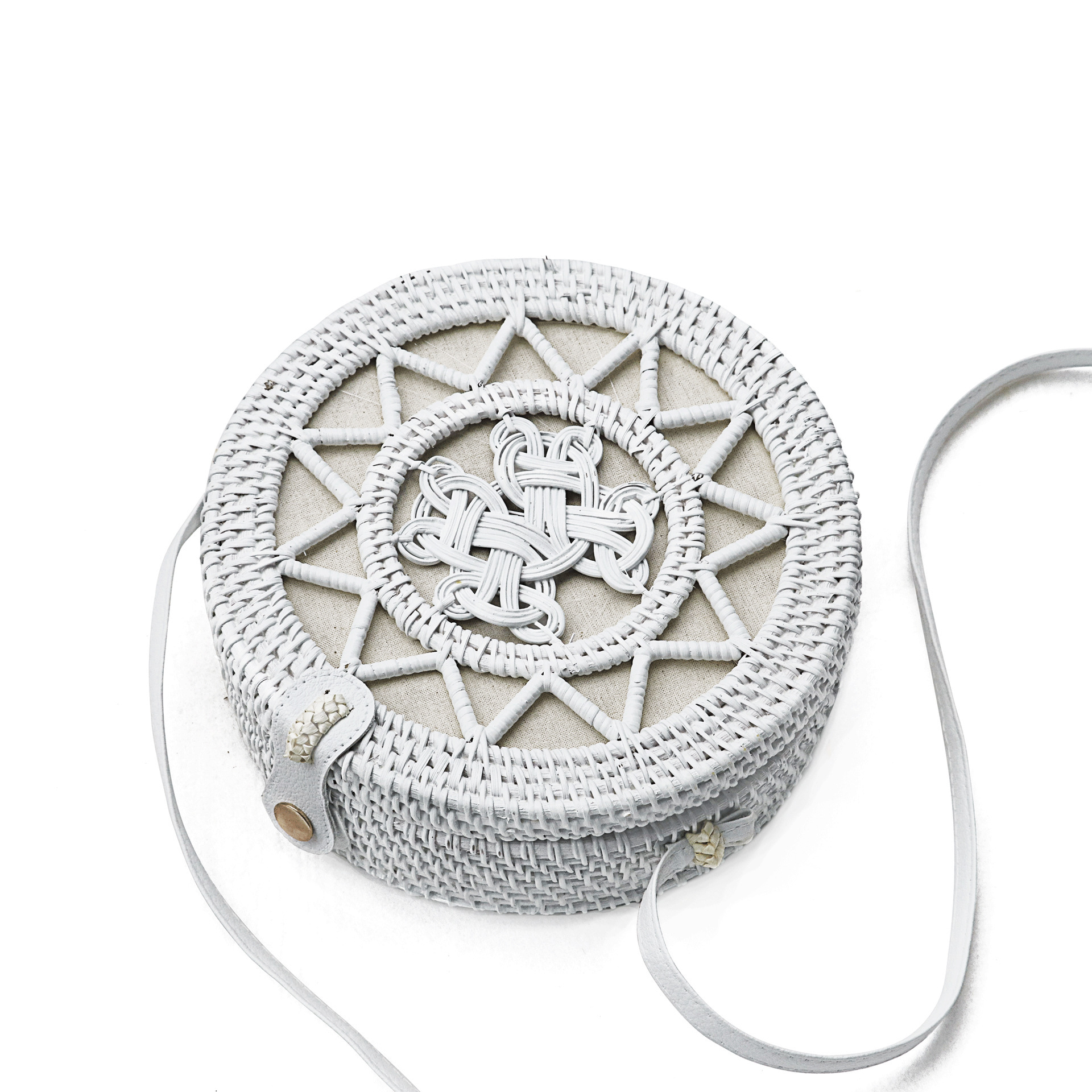 藤編ins同タイプの斜めショルダーバッグ森系文芸女性カバン編みの白いショルダーバッグ