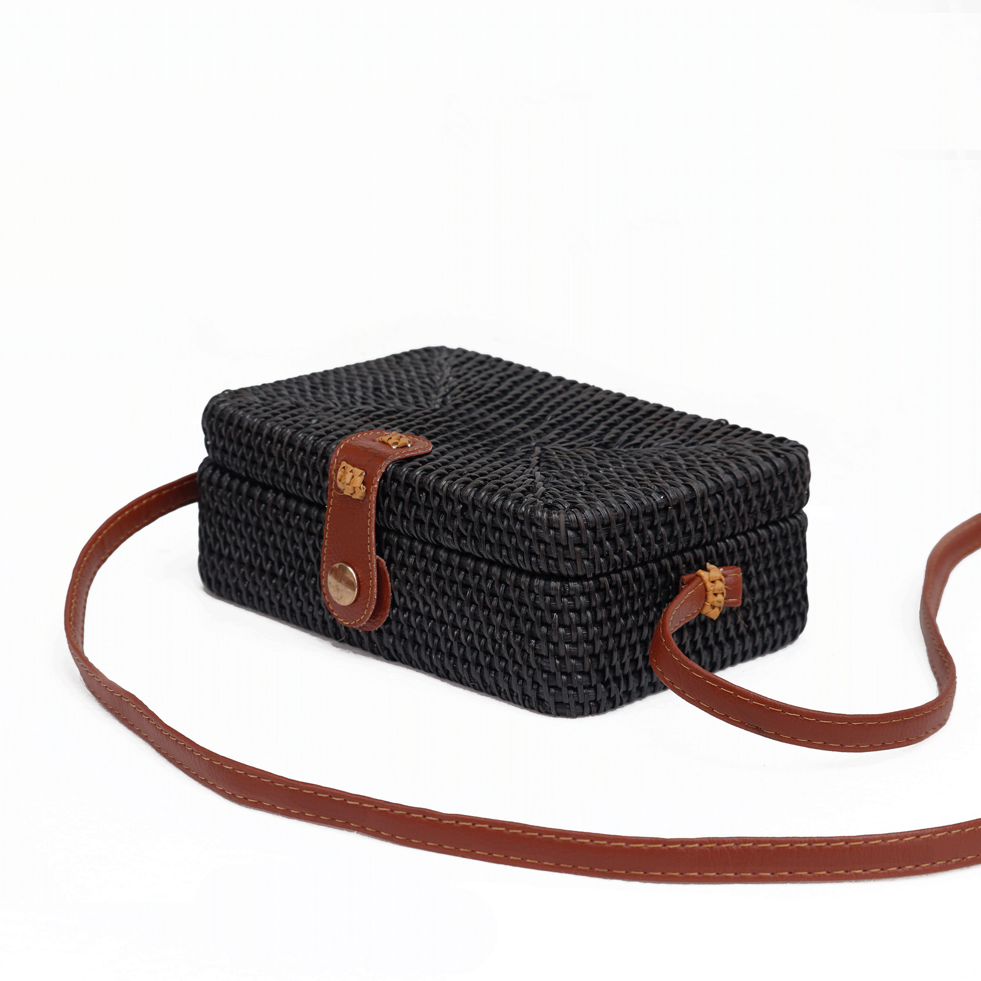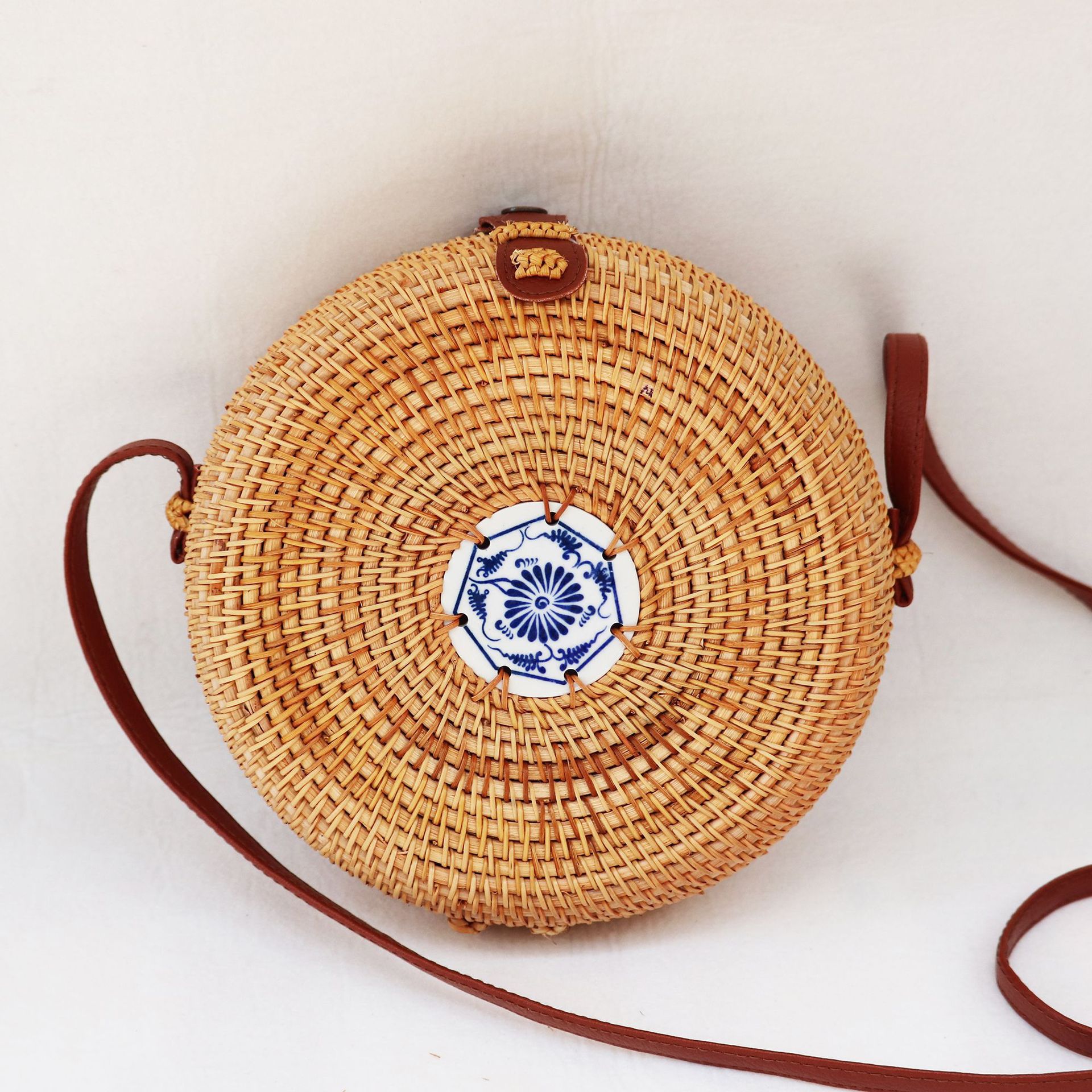 女性の斜めのショルダーバッグの網の赤い包みの手作りのインドネシアの藤の編みのショルダーバッグの素顔の純粋な手編みのメーカーは直接販売します。