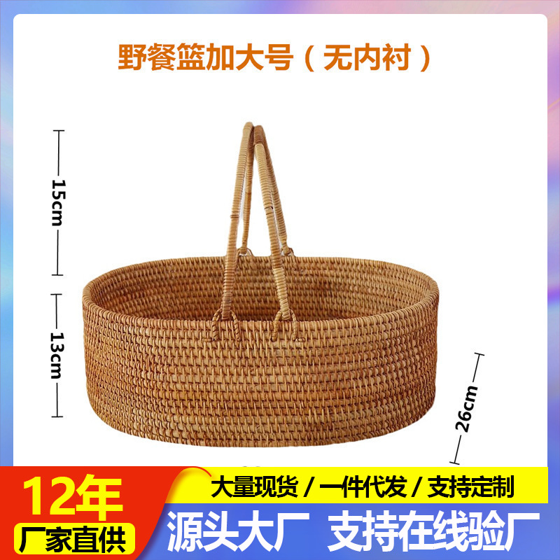 ピクニックかご藤編ベトナム手作りバスケットアウトドア用品手提げ果物摘みバスケットネット赤キャンプ道具