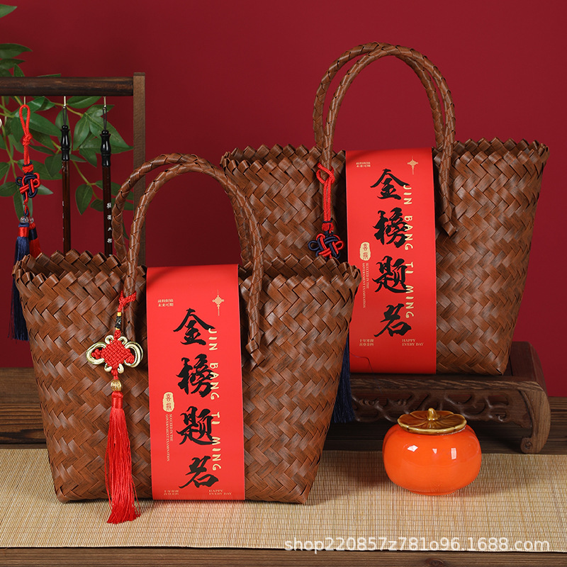 模造籐編みバスケット、大学入学試験、入学祝い、結婚式、ベビーバンケット、高級コーヒー色のギフト、ポータブルハンドメイド