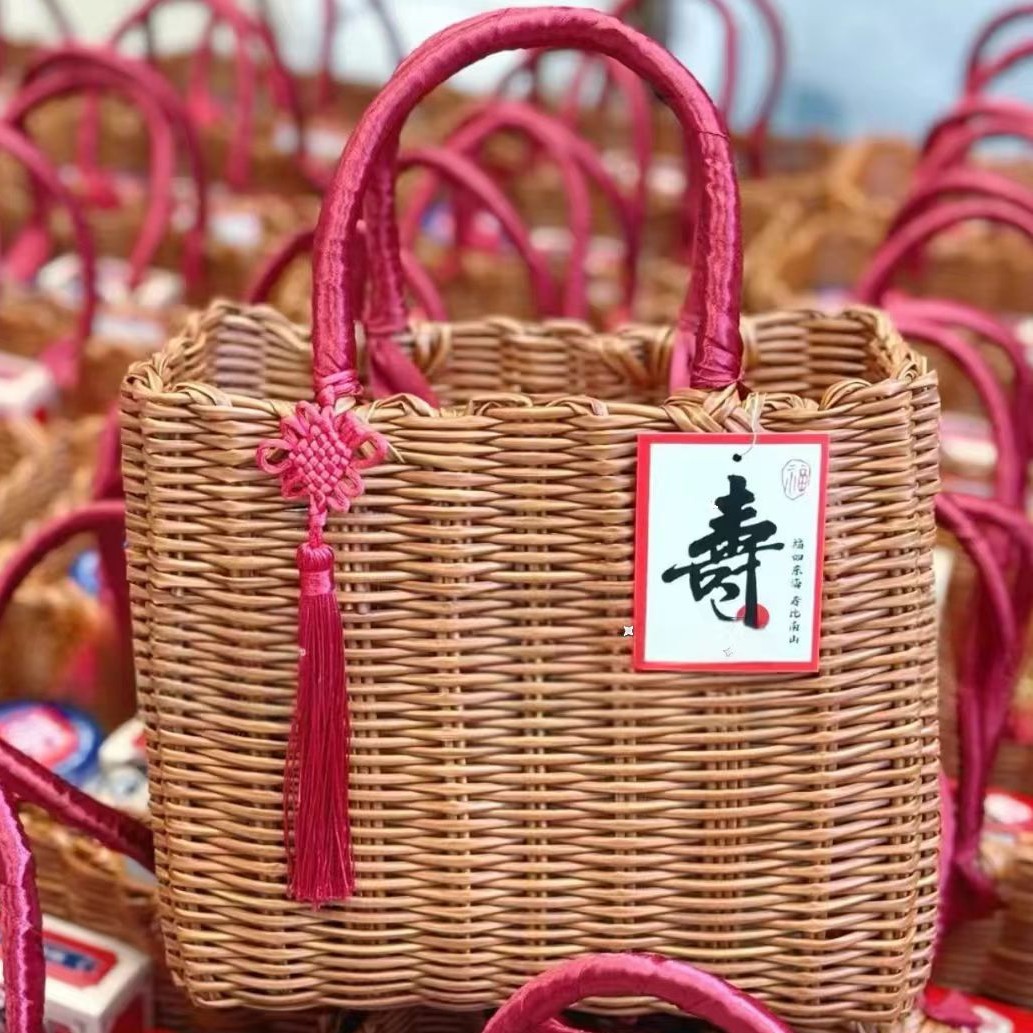 ベージュ模造藤編みバスケット手提げバスケットお土産結婚式満月誕生日ジョー会社年次総会プレゼントバスケット