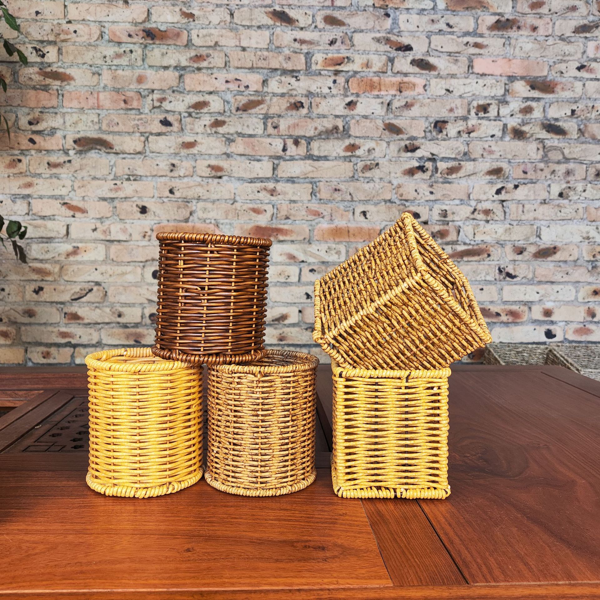 新しい卸売りの文房具の収納筒の円形のデスクトップのアイデアの筆立ての手作りの藤は多く筆立てを編みます。