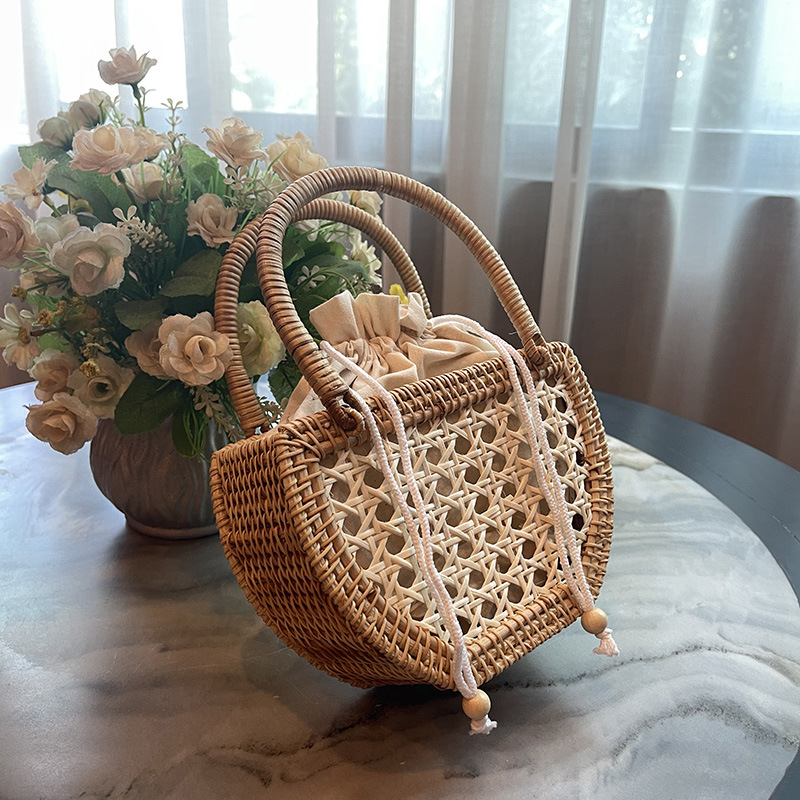 ベトナム籐編みバッグフランス風竹編みレディースハンドバッグハンドバッグ茶道具収納バスケット旅行休暇insバッグレトロ