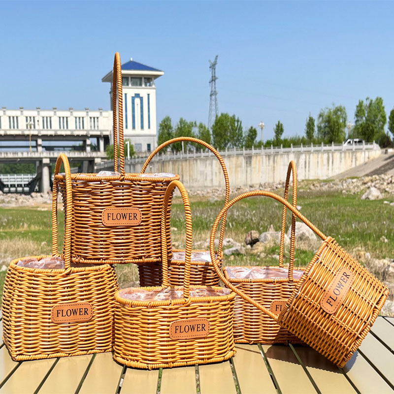 メーカー卸売りゴム編み手提げかごプラスチック藤花かご編みかご包装かごお土産かごDIY生け花かご