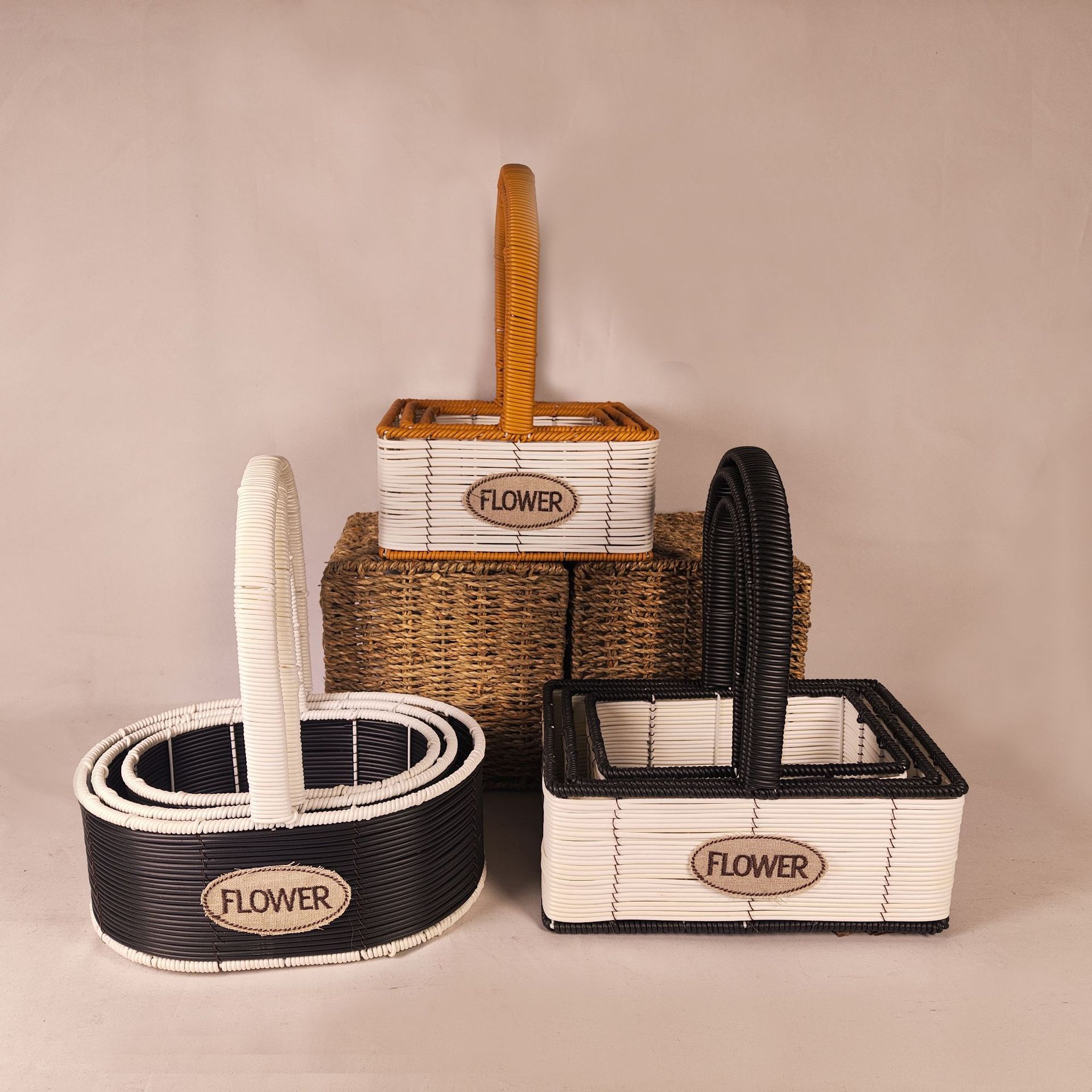 加工されたカスタム包装バスケット、ギフトバスケット、DIYフラワーアレンジメントバスケット、プラスチック編みハンドバスケット、プラスチック籐フラワーバスケット、編みバスケット