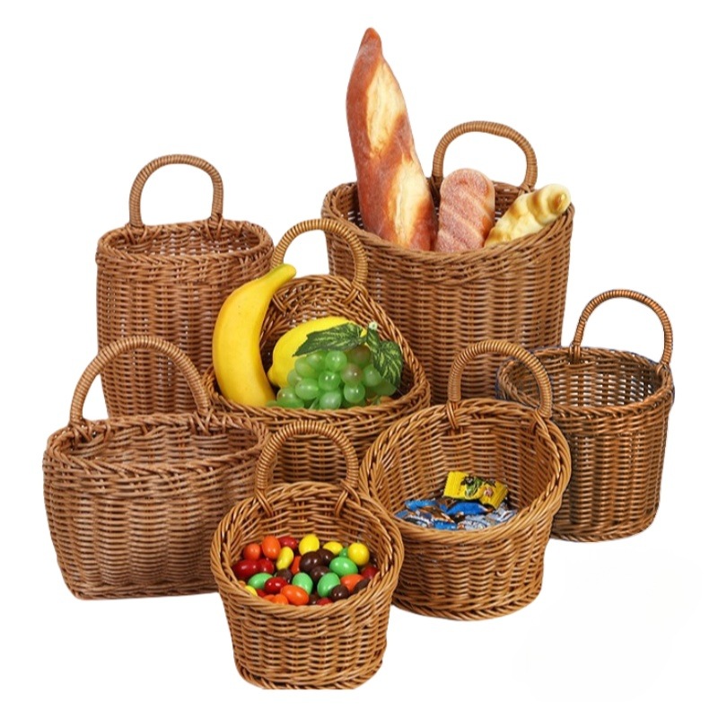 牧歌的な手作りプラスチック壁掛け収納壁掛けバスケットホームクリエイティブ壁装飾模造籐フルーツバスケットフラワーアレンジメントバスケット