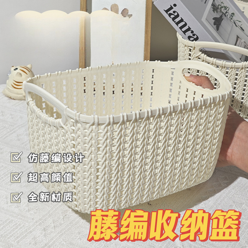 プラスチック模造籐収納バスケット肥厚デスクトップおもちゃ雑貨収納ボックス浴室化粧品収納バスケット収納バスケット