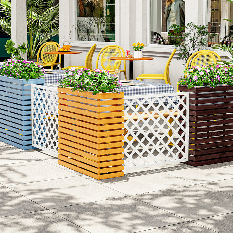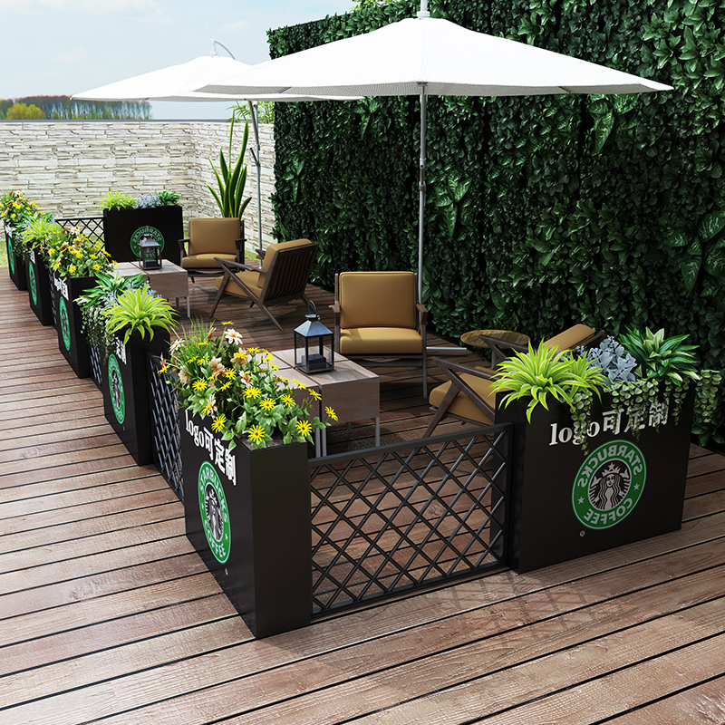 屋外フラワーボックスフェンスレストランコンビネーションパーティション広場商業街鉄金属フラワースタンド植栽ボックスフラワートラフカスタマイズ
