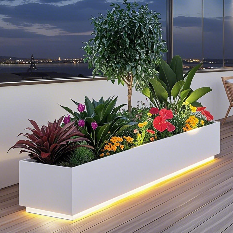 ♔ ライトフラワーボックス屋外バルコニーパティオ中庭植栽ボックスステンレス鋼鉄製完成品パーティション屋内発光花