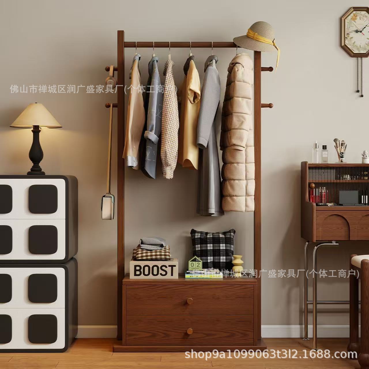 北欧無垢材チェストとコートラック一体型北米産ブラックウォールナット多機能分離型吊り下げワードローブ工場直販