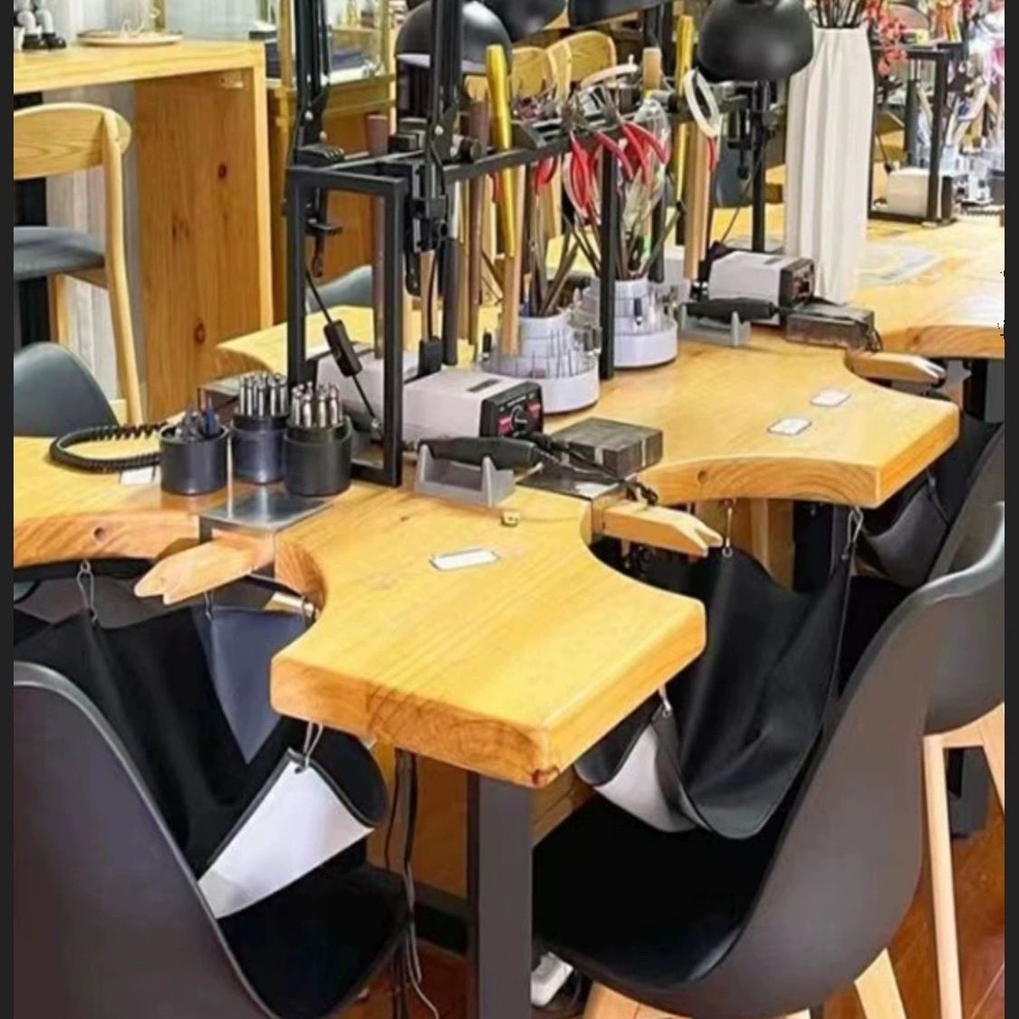 ジュエリー金属加工テーブル、ダブル無垢材金加工テーブル、6人用金属加工テーブル、ジュエリー金銀加工テーブル