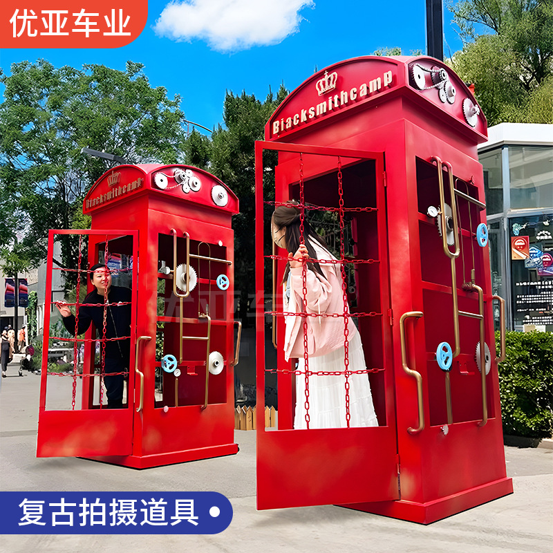 ヨーロッパの床から天井までの赤い組み合わせ小道具、柔らかい装飾、レトロな装飾品、小屋、インダストリアルスタイル、大型電話ボックス、鉄細工