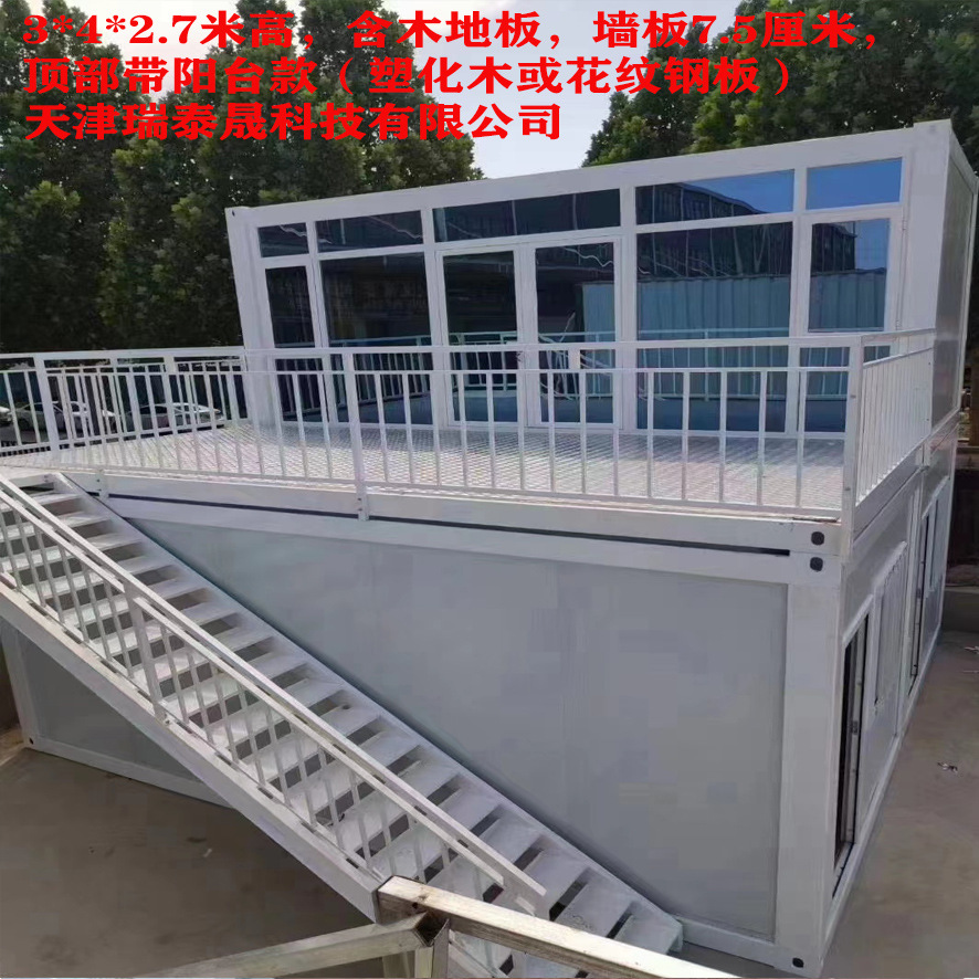 梱包箱活動室屋上バルコニー付きサウナ木または亜鉛メッキ鋼板処理ガードレール付き