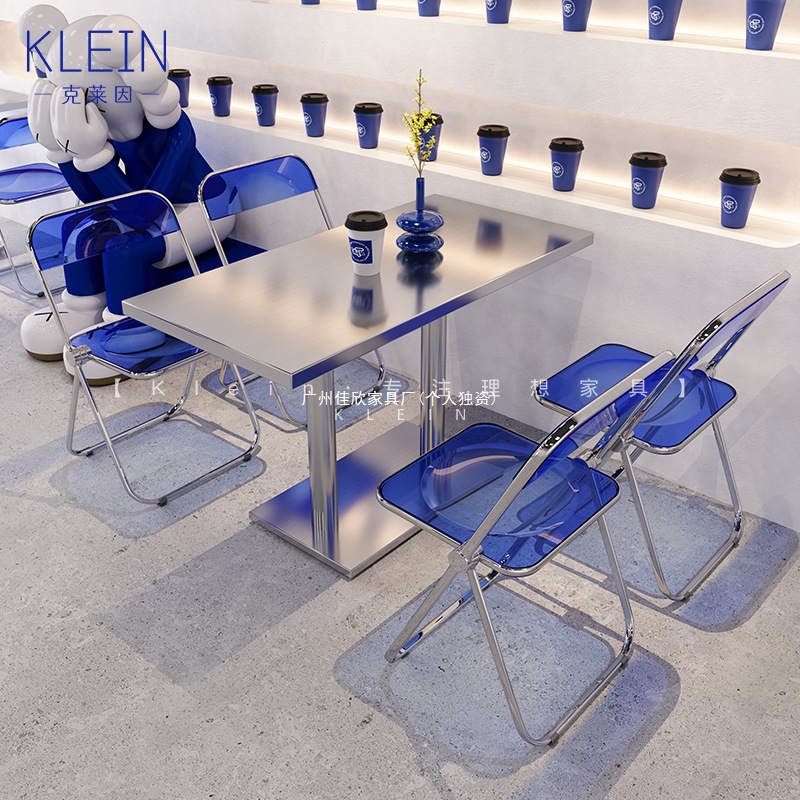 インダストリアルスタイルのミルクティーショップコーヒーショップステンレス鋼のテーブルと椅子の組み合わせインターネット有名人のスナックバーピリ辛湯店バーベキューショップの椅子