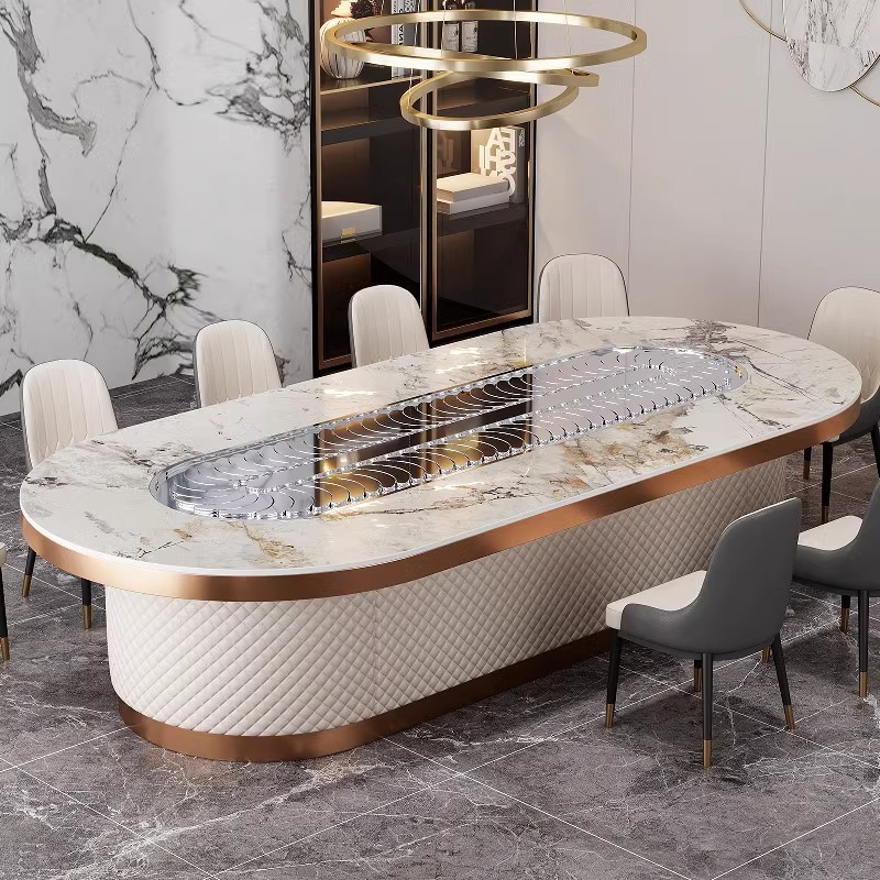 楕円形電動ダイニングテーブル 長方形回転ホテルダイニングテーブル 回転式小型鍋テーブル 電磁調理器一体型楕円形テーブル