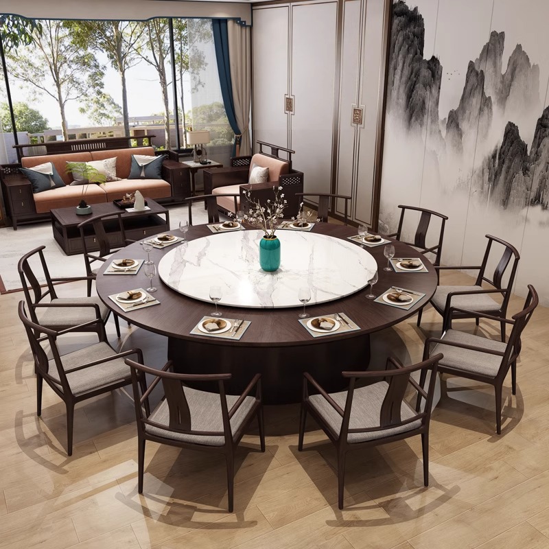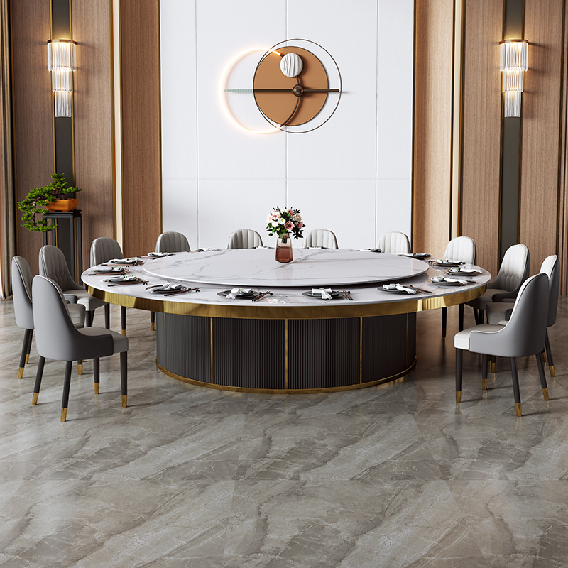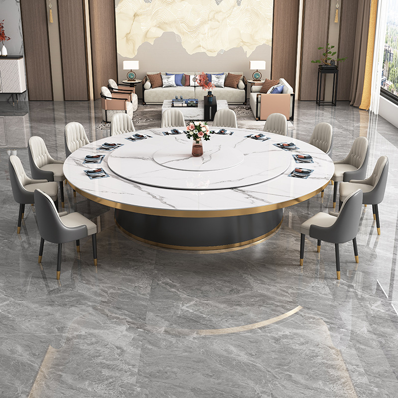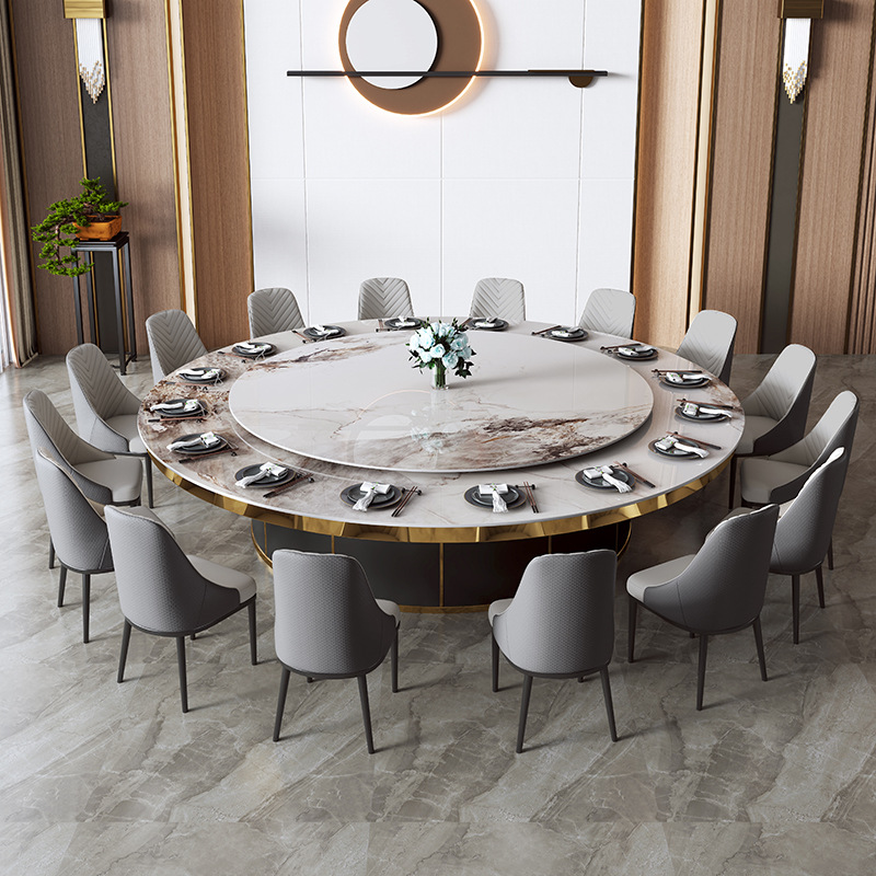ホテルダイニングテーブル電動大型ラウンドテーブル12/20人用2/20人用クラブボックスレストラン新中国風スレートターンテーブルダイニングテーブル