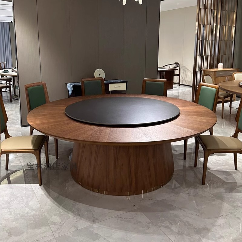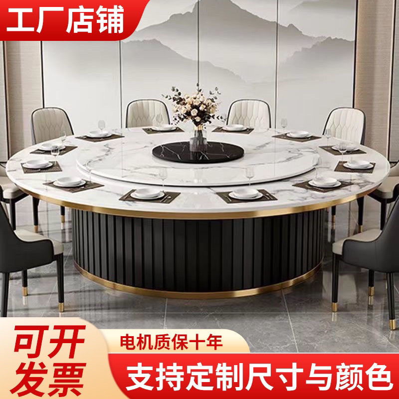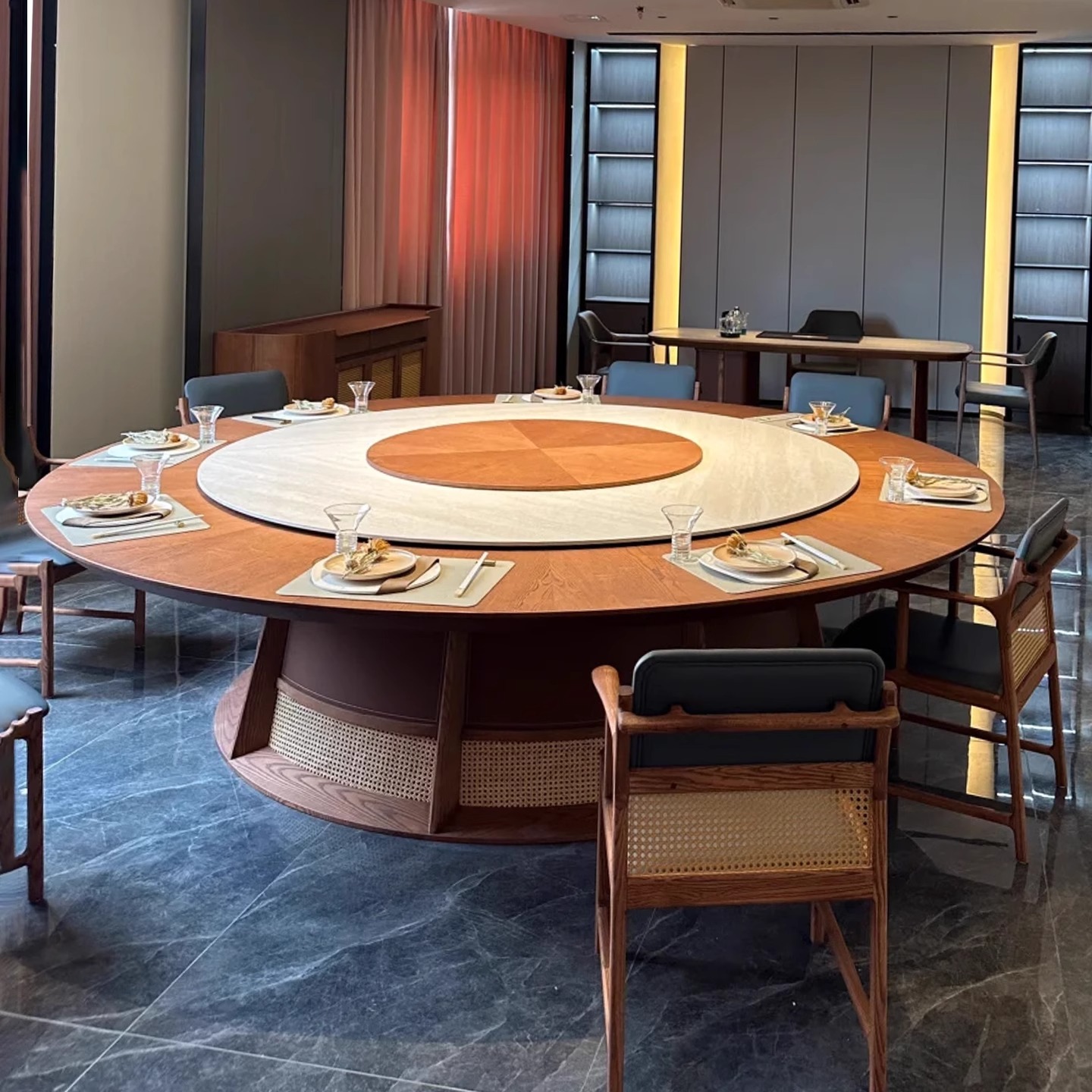 新中国式ホテル大円卓電動実木食卓椅子と椅子と回転盤岩板付き15人20人ホテル会のトランク