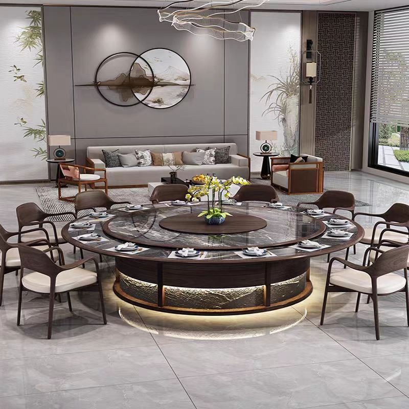家庭用岩板食卓大円卓15人20軽贅沢ホテルレストラン円形電磁ストーブ火鍋テーブルホテル電動
