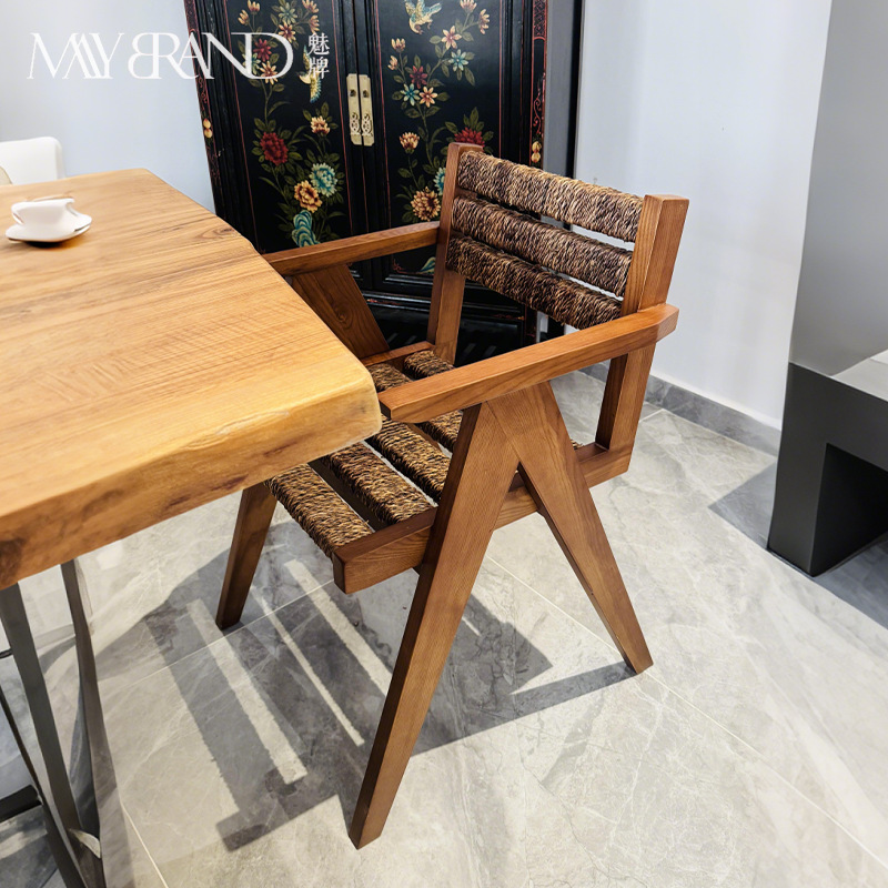 寂しい風の復古の民宿の商用の藤は実木の食事の椅子のアームチェアを編んで椅子のメーカーの卸売りを相談します。