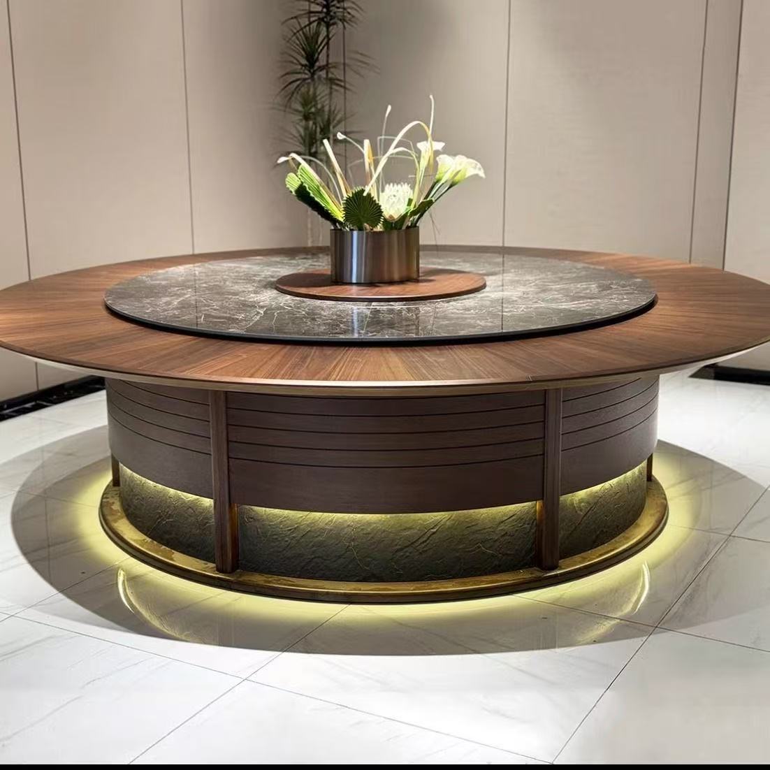 ホテル電動大型ラウンドテーブル無垢材デスクトップロックプレートターンテーブルレストラン宴会場ホテルホームハイエンドダイニングテーブルはカスタマイズ可能