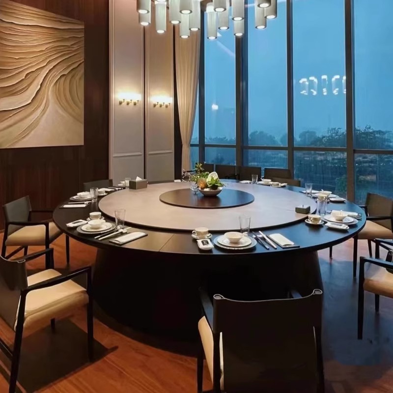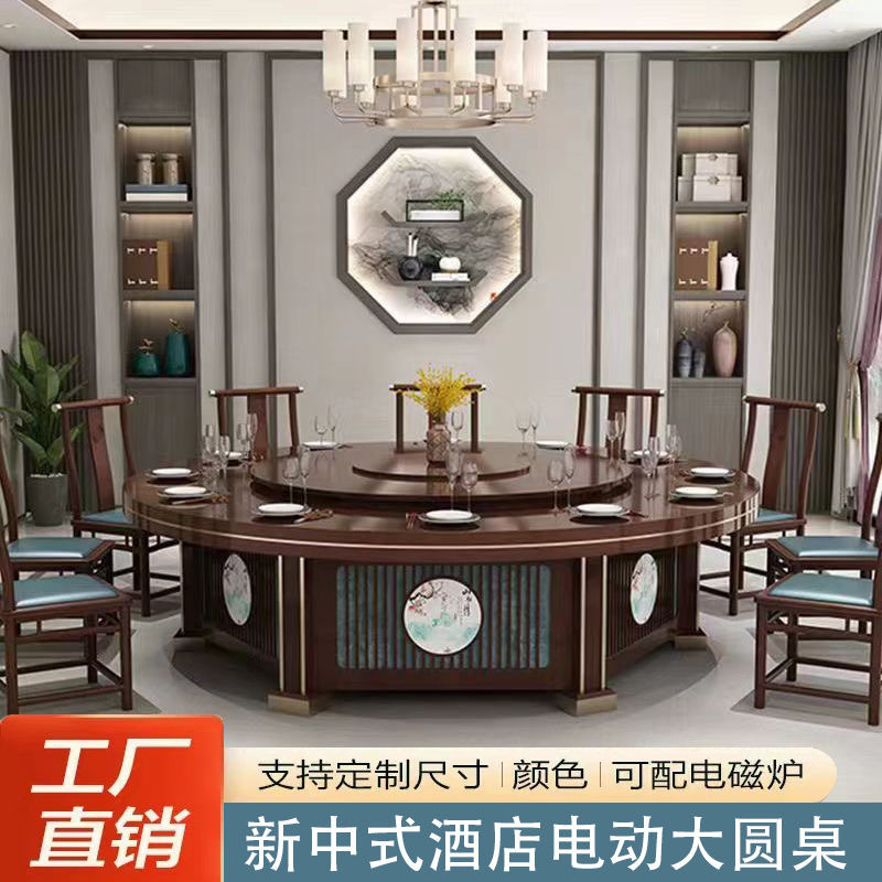 新しい中国風電気ダイニングテーブル大型ラウンドテーブルホテルボックスレストランクラブハイエンドロックプレートターンテーブル20人30人
