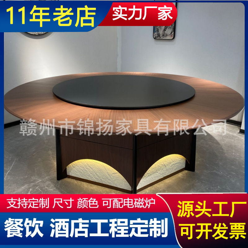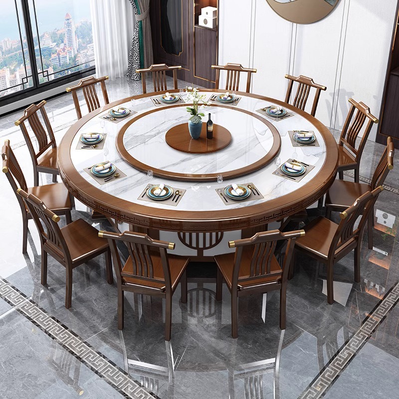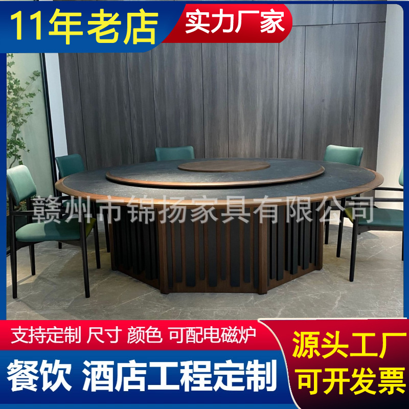 新しい中国風無垢材スレートホテル電気ダイニングテーブル大型ラウンドテーブル18人20人レストランレストラン鍋テーブル